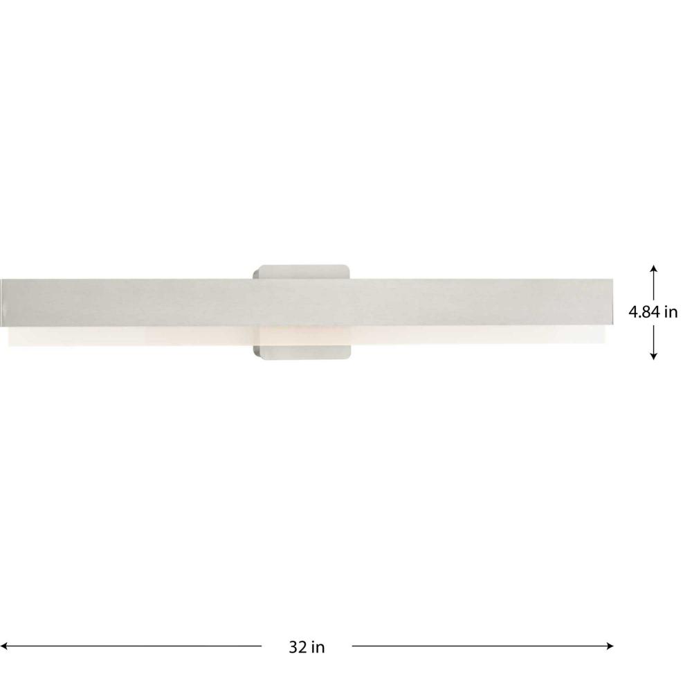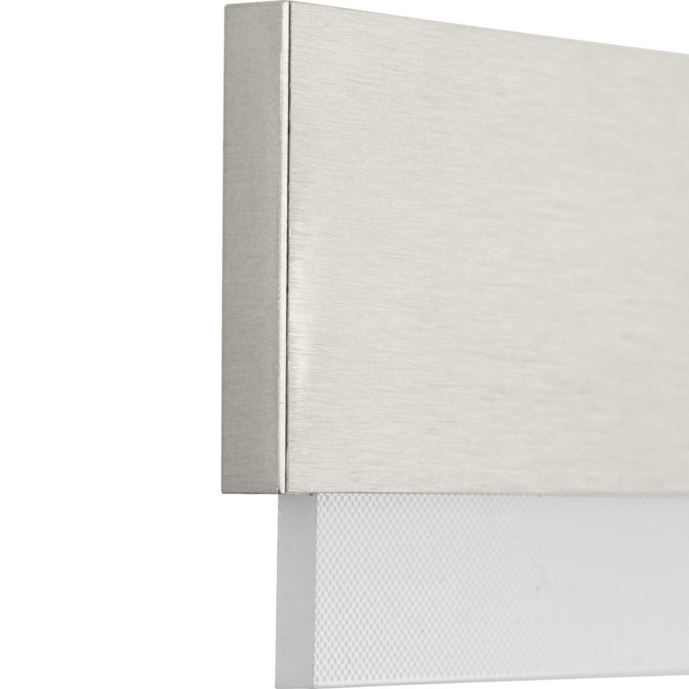 Add contemporary style to bathrooms with the Semblance Collection LED Large Linear Vanity light. This versatile design is ideal for any bathroom in contemporary or modern commercial or residential settings. Progress Lighting products are designed for exceptional quality, reliability, and functionality. Anchored by a sleek, square backplate, a handsome rectilinear metal bar holds an acrylic diffuser along its length, creating edge-lit illumination. Finished in soft brushed nickel. Color selectable technology offers a choice of 3000K, 4000K or 5000K at a flip of a switch to perfectly illuminate surroundings with multi-directional, energy-efficient light. This versatile design is ideal for any bathroom in contemporary or modern commercial or residential settings. Progress Lighting products are designed for exceptional quality, reliability, and functionality.