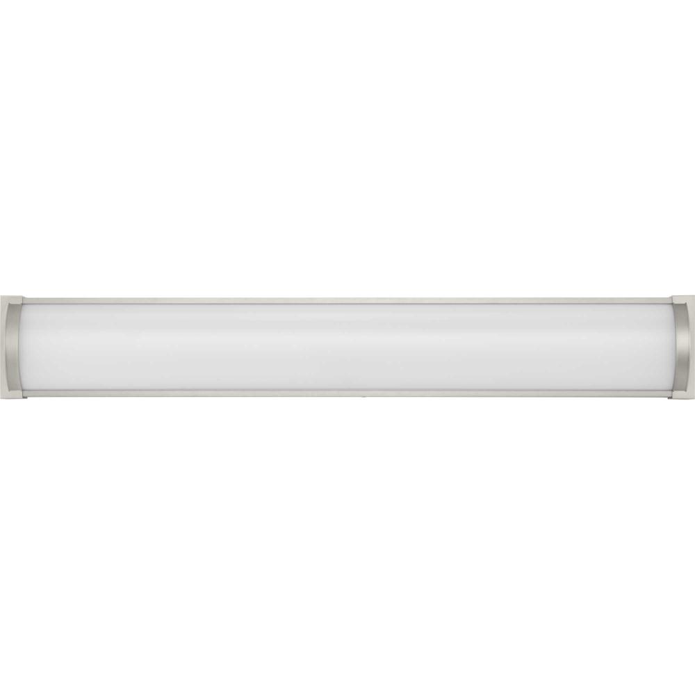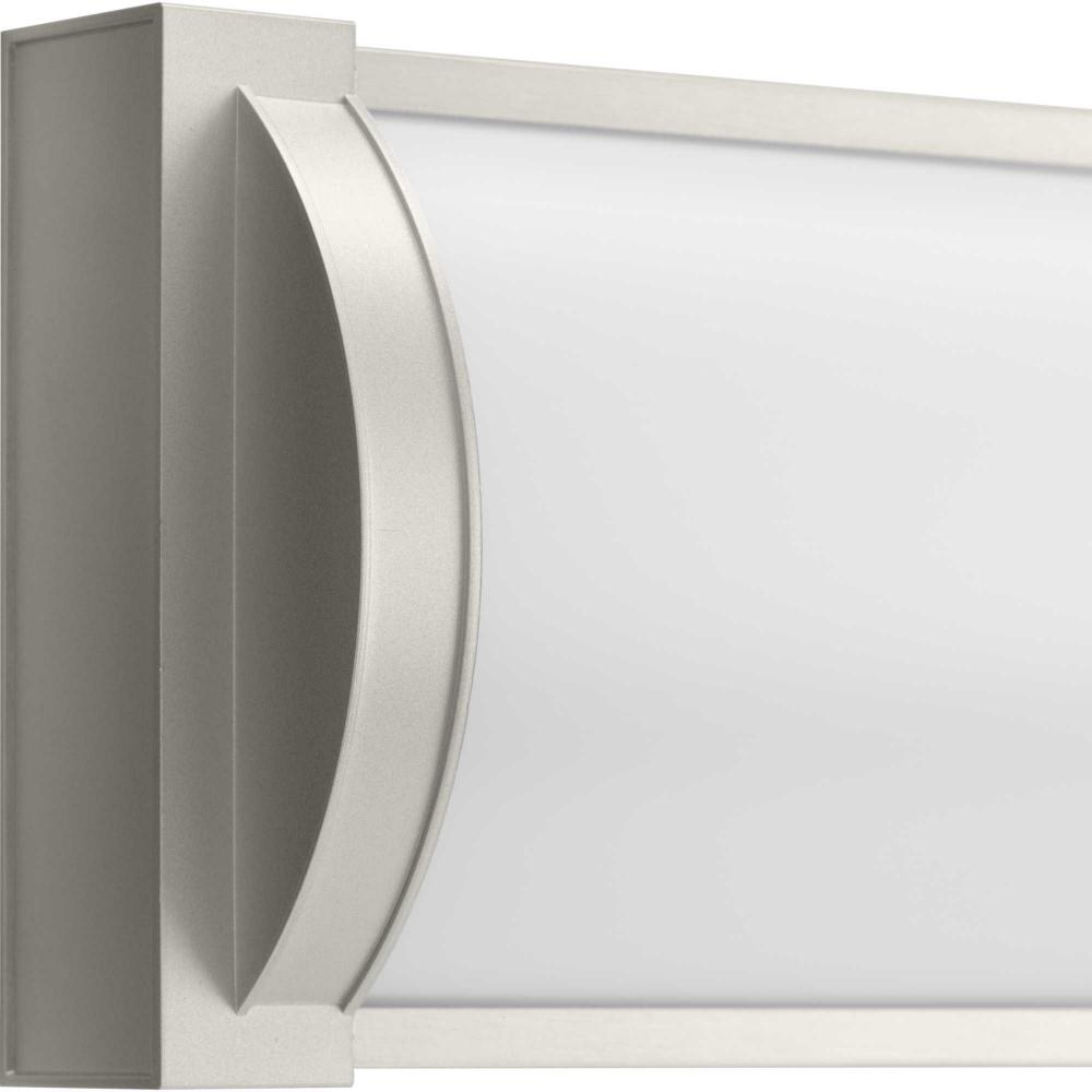 The Barril Collection LED Large Linear Vanity Light features a rectangular silhouette supported by a slim metal frame coated in a soft brushed nickel finish. This wall-mounted, durable fixture is given an elegant touch with its rounded, half-cylinder acrylic shade that emits balanced, 3000K 90CRI LED illumination. The vanity light's versatile design is ideal for any bathroom in contemporary or modern commercial or residential settings. Progress Lighting products are designed for exceptional quality, reliability, and functionality.