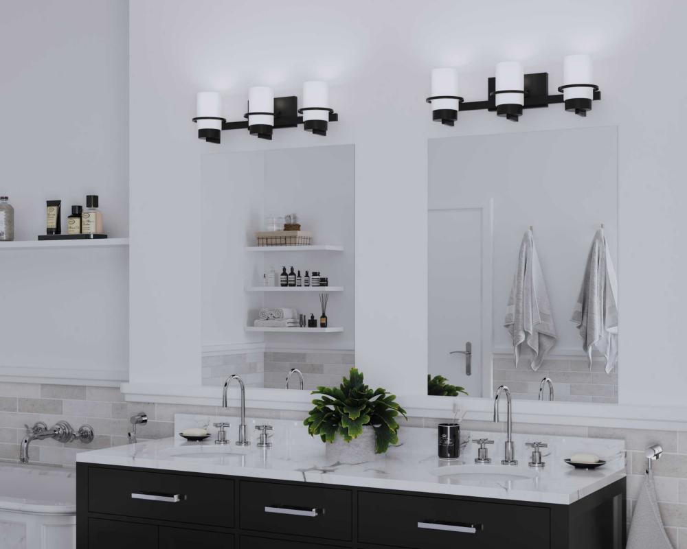 Bring a refreshed sense of style to the bath with Reiss. A polished concentric band accents a simple white glass shade, bringing an elegant appeal to the modern design. The vanity light's polished design brings balance and sophistication to modern farmhouse and contemporary settings.