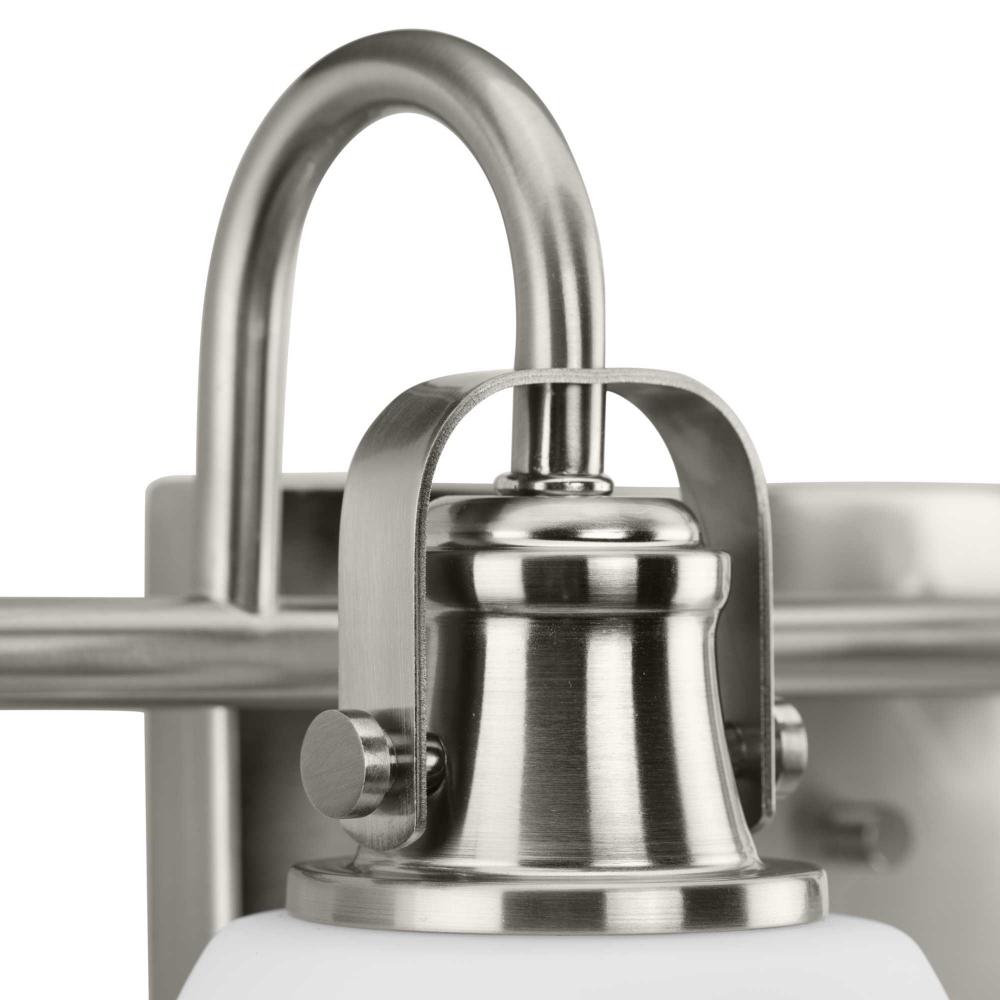 Preston features industrial inspired details paired with elegant opal glass for comfortable illumination in the bath, and fits beautifully into farmhouse, coastal and transitional settings. The decorative frame includes a softly curved metal support with authentically crafted hardware elements.