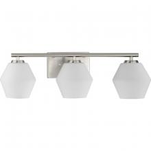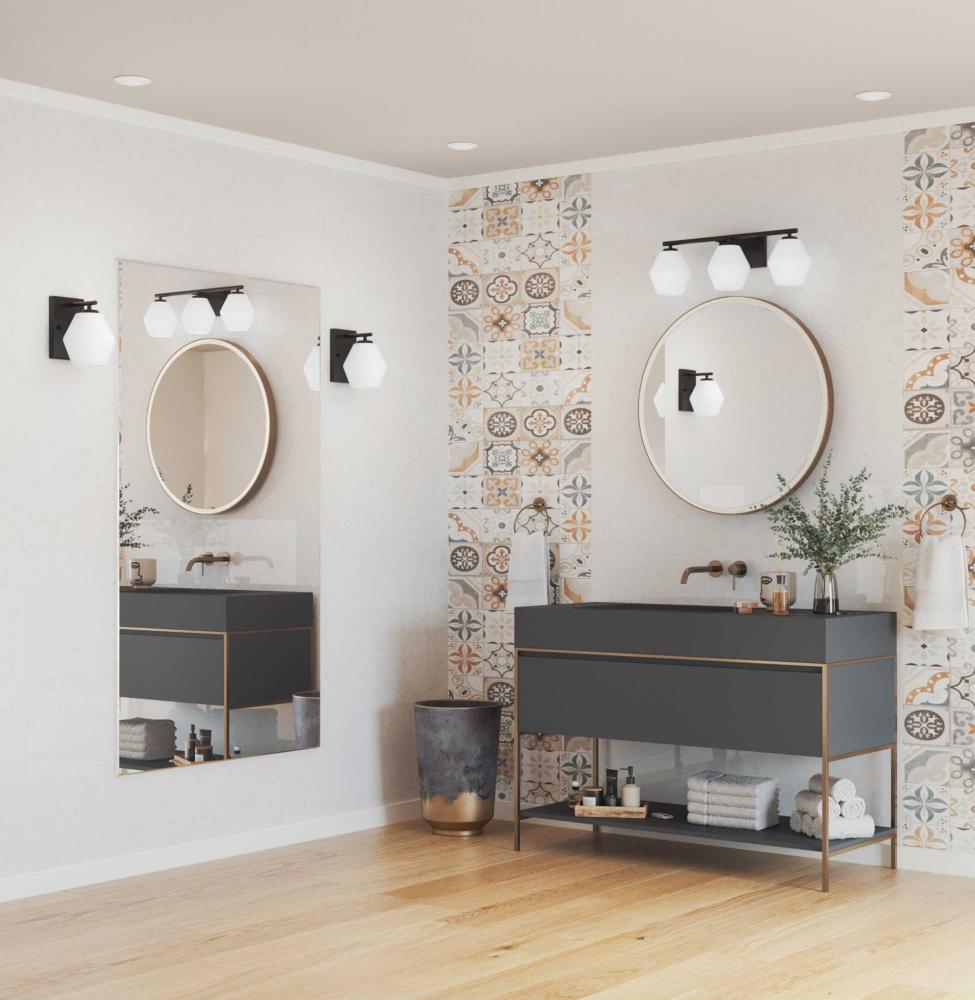 A softened diamond silhouette brings modern appeal to the Copeland Vanity Light. The geometric opal glass shades delivers elegant illumination to bathrooms in mid-century modern and contemporary settings. Mount the light fixture with the glass facing up or down for more design flexibility.