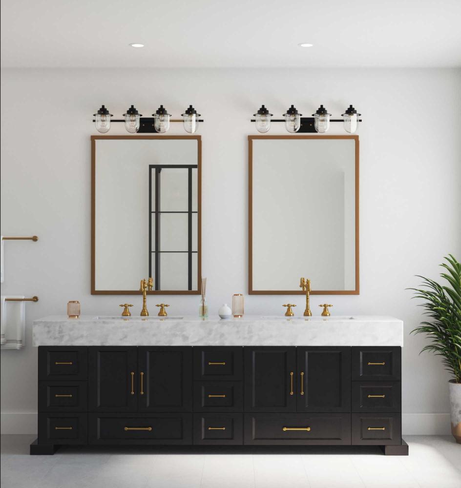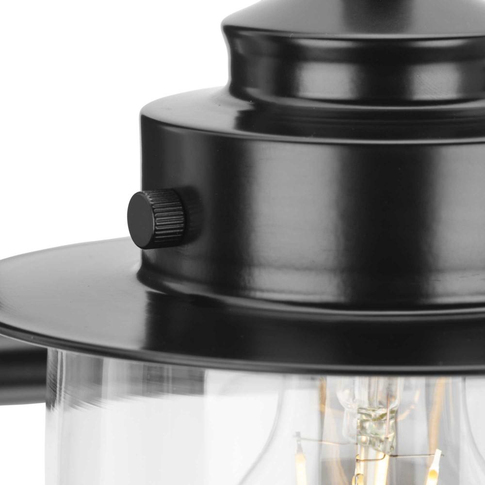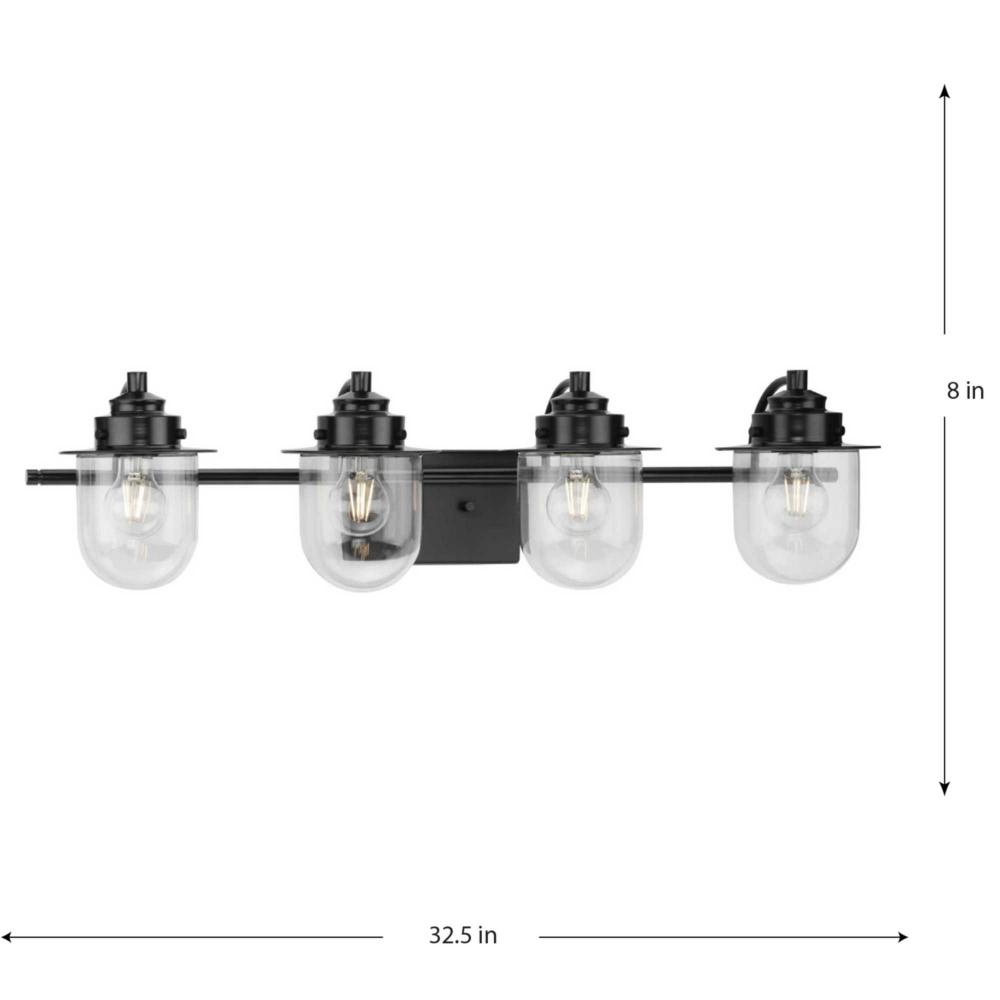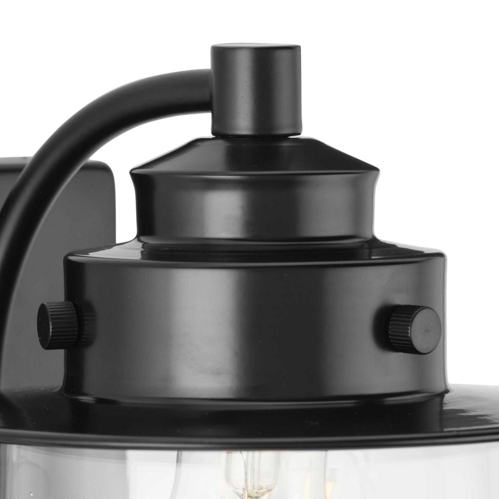 The nostalgic Northlake Collection combines classic design influences with nautical inspiration. Finished in matte black, the rounded diffuser and layered caps are reminiscent of floating buoys and weekends on a mountain lake. Clear glass shades cast a pleasing glow in bathrooms and powder rooms in coastal and transitional settings. This versatile fixture can be mounted up or down, increasing its design flexibility. It is cULus damp rated and has a one-year warranty to guarantee your complete satisfaction. Progress Lighting products offer exceptional quality, reliability, and functionality. .