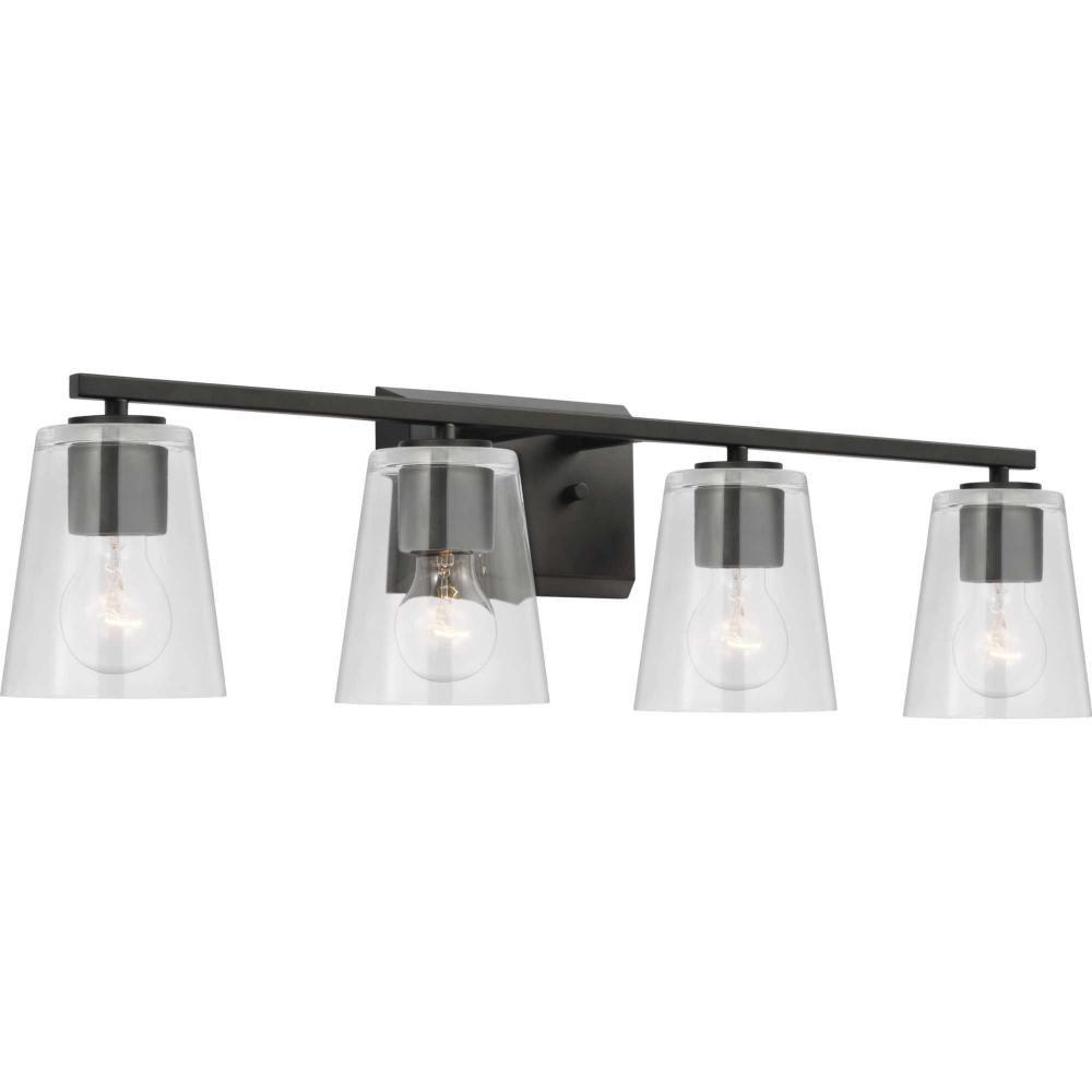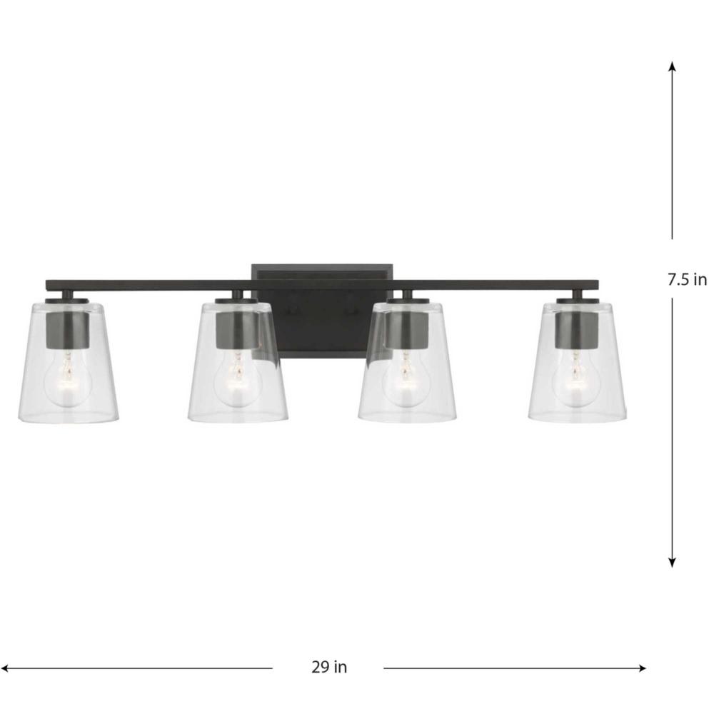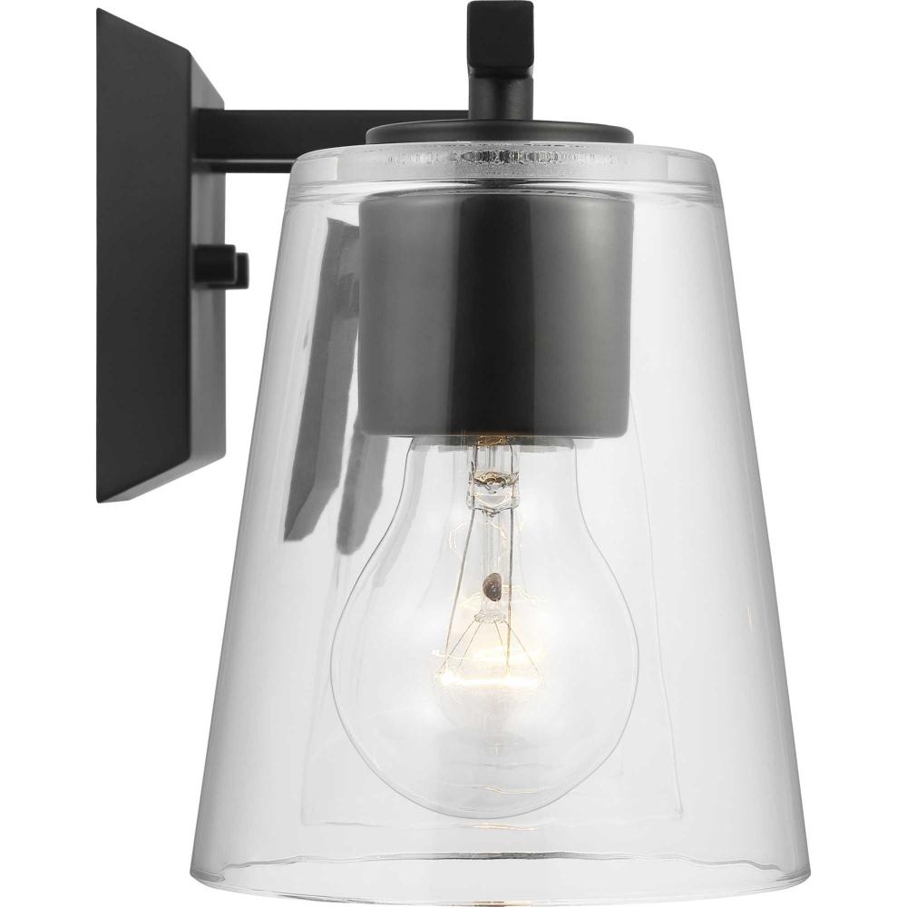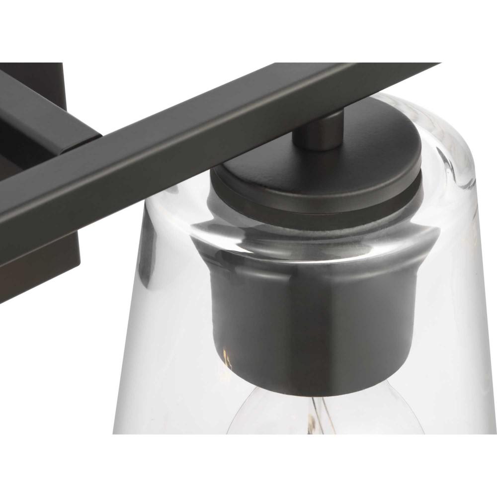 Elegantly extended, the Vertex Collection is composed of angular forms finished in crisp matte black to create a bold design that perfectly complements modern interiors. Glass shades delivers bright illumination to bathrooms and powder rooms in contemporary settings. This versatile fixture can be mounted up or down, increasing its design flexibility. It is cULus damp rated and has a one-year warranty to guarantee your complete satisfaction. Progress Lighting products offer exceptional quality, reliability, and functionality. .