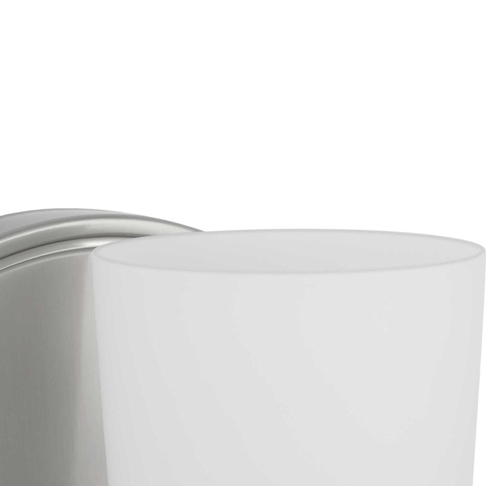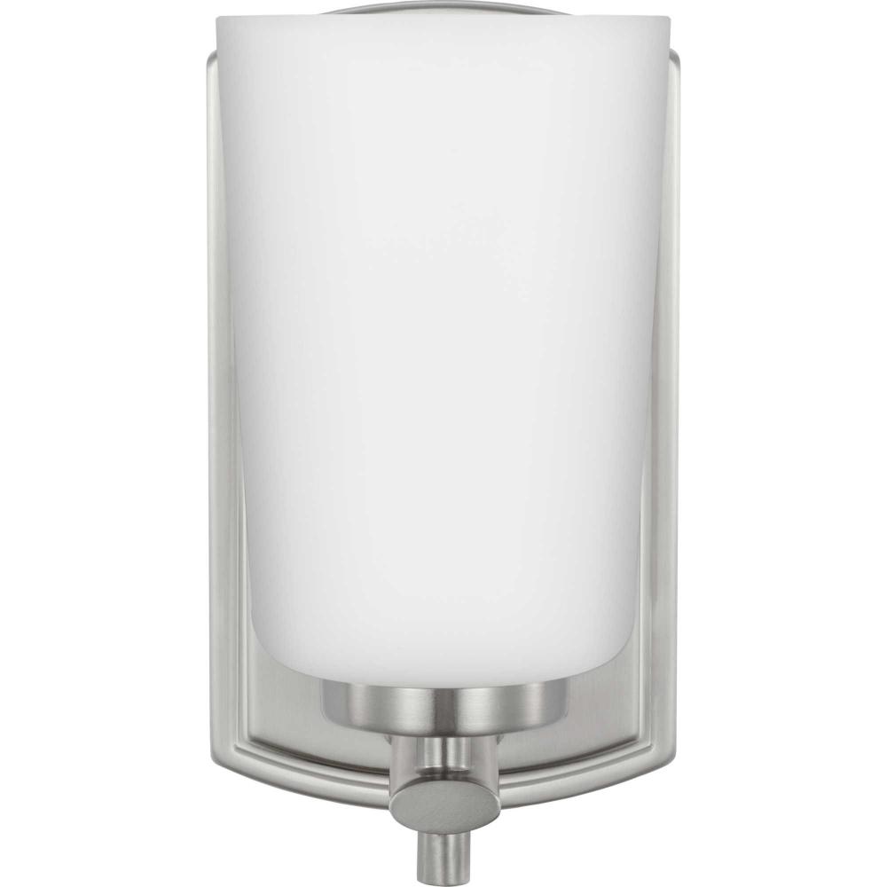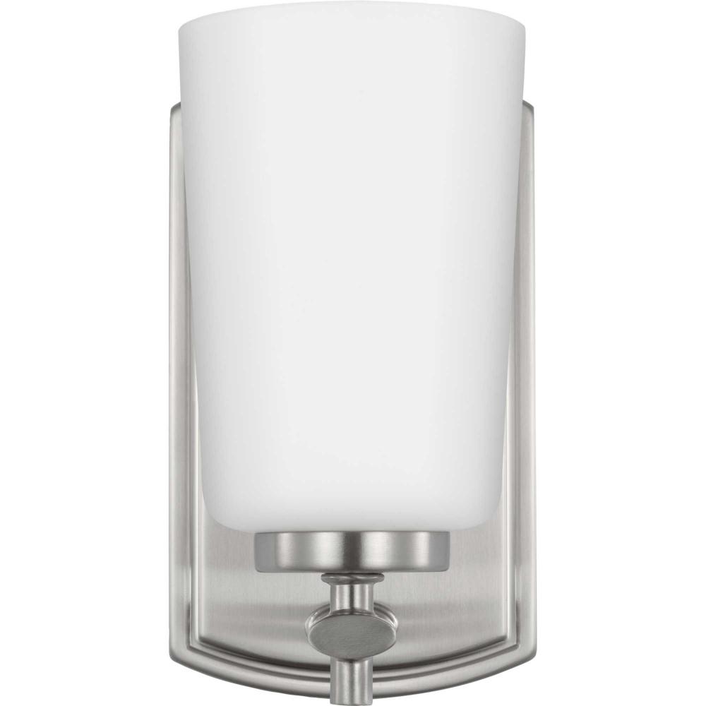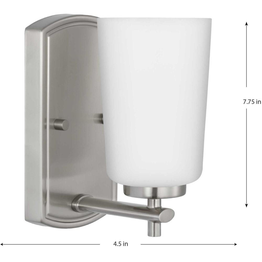 Fundamentally modern but with a traditional twist, the Adley vanity light combines an opal glass shade with a curved edge backplate and a simple, straight bar finished in soft brushed nickel. This light is an elegant choice for illuminating new traditional and transitional settings.