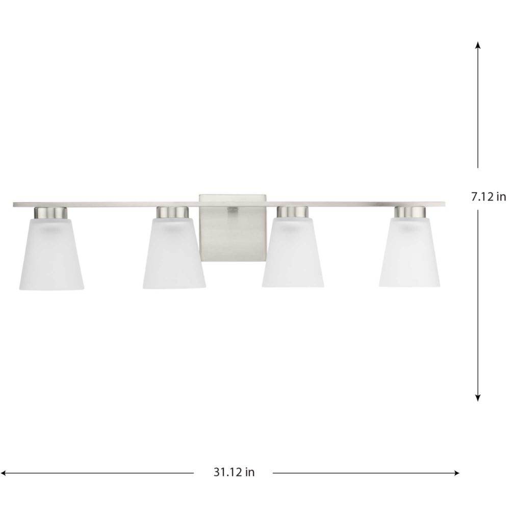 A Brushed Nickel finish emphasizes the fixture's lively design
