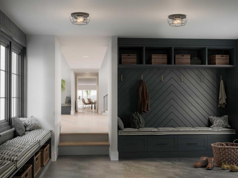 Inspired by industrial elements, Gauge two-light flush mount features an open cage design that's both functional and aesthetically appealing. Frame is comprised of a Graphite finished wire frame with Brushed Nickel accents. Hinged door provides easy access to change lamp.