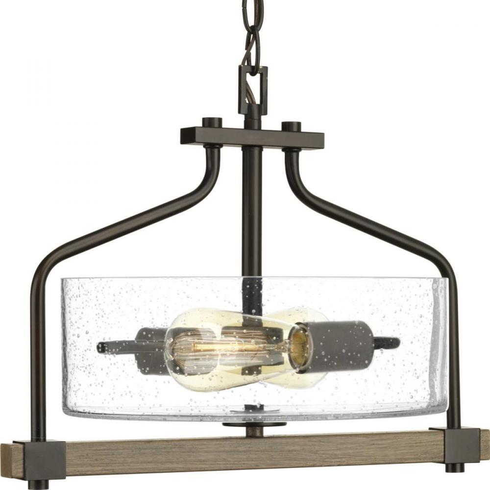 Rustic and vintage lighting that transforms a home into a nostalgic retreat.;A faux-painted wooden plank supports artful clear, seeded glass shade.;Design reminiscent of rural farmhouses;Exposed iron details.;Antique Bronze finish.;Combine with vintage-sty