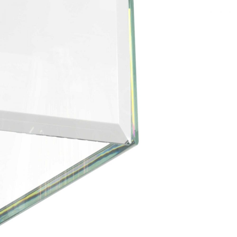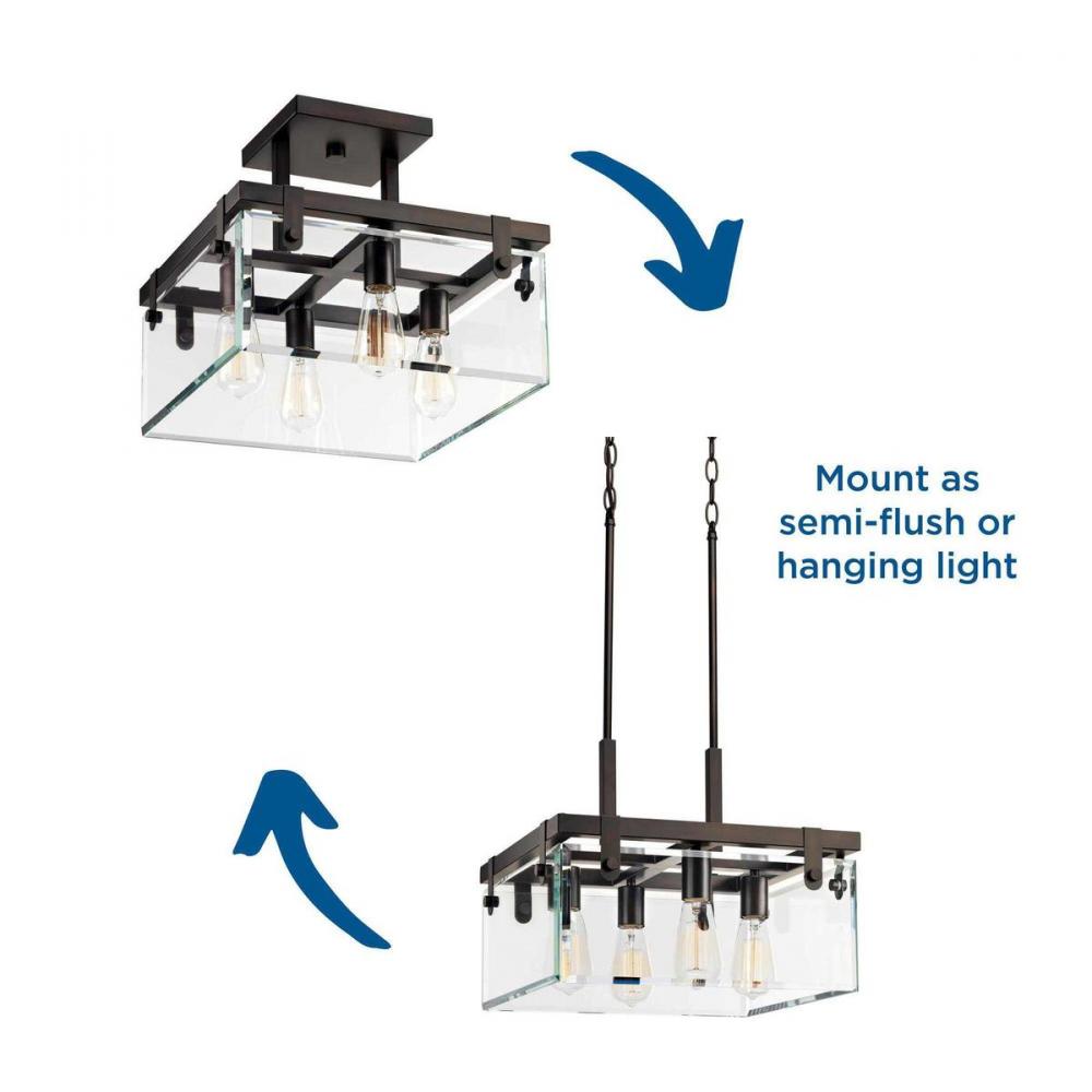 Inspired by modern architecture. Glayse features handsome details for variety of interior design styles. The frameless unbounded beveled glass creates beautiful light and reflection. The structure of Glayse is the focal point of the design, where form follows function. The four-light semi-flush convertible fixture is complimented by an Antique Bronze finish.