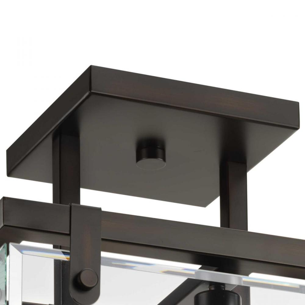 Inspired by modern architecture;The structure of Glayse is the focal point of the design, where form follows function;Four light semi flush convertible;Popular Antique Bronze finish;The frameless unbounded beveled glass creates beautiful light and reflecti