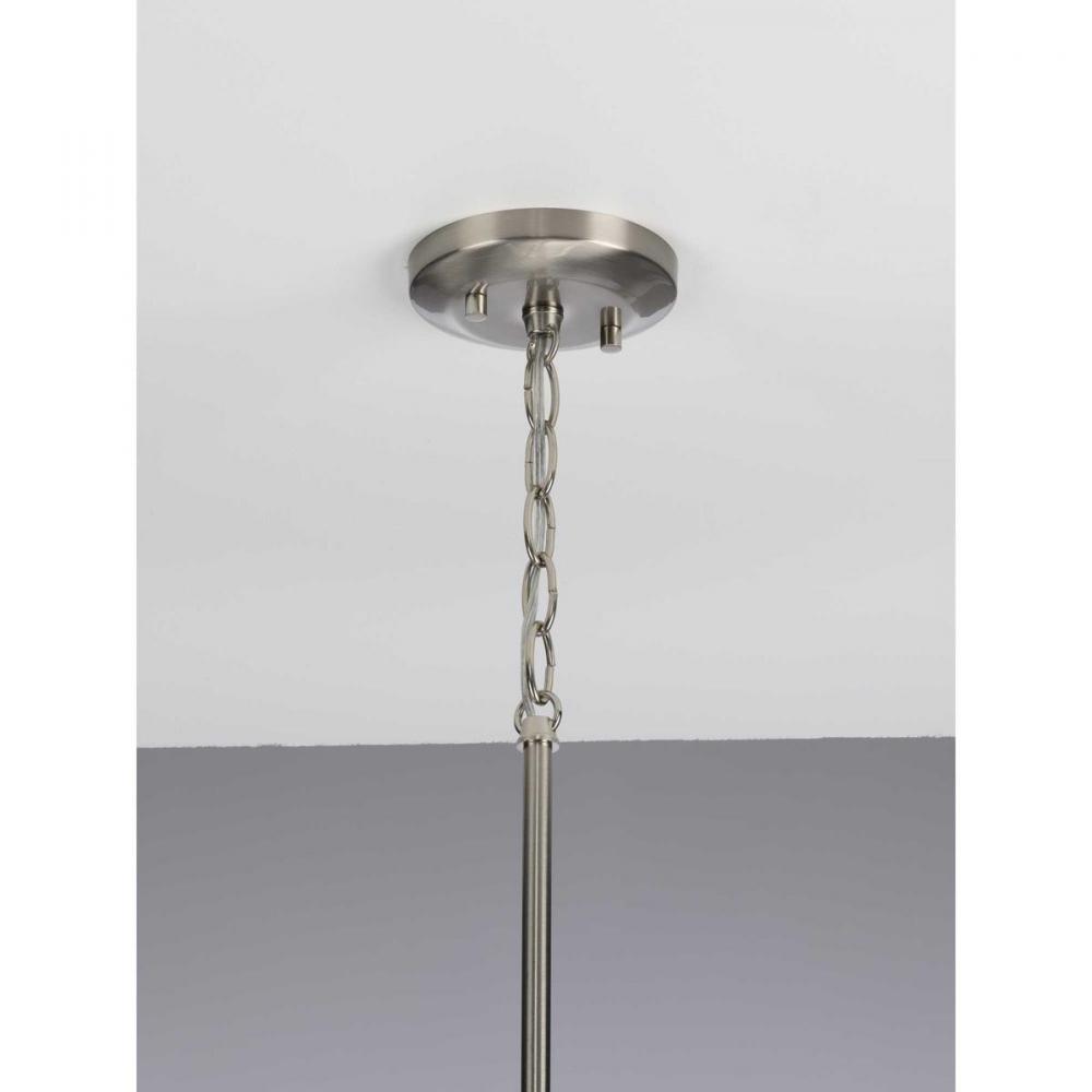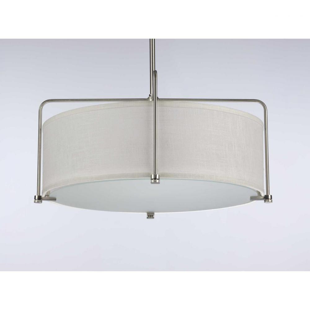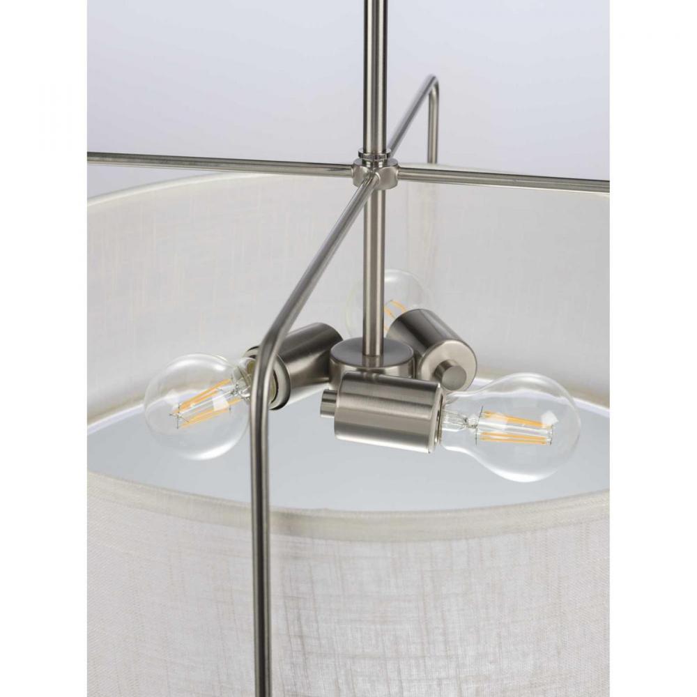 Progress P500139-009 - Kempsey Collection Three-Light Brushed Nickel Summer Linen Shade Farmhouse Pendant Light