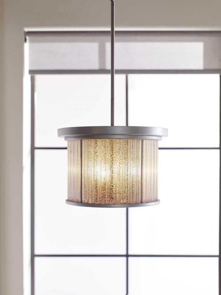 With all the romance, mystery and architectural presence of a lighthouse, the Sequit Point Collection glows in the same way lighthouse beacons used strips of glass to focus light and safeguard the rugged coastline. Mercury glass sleeves stand in tandem with clear glass rods, trimmed with Antique Nickel bands top and bottom. Sleek Antique Nickel hardware is used to convert the fixture from a semi-flush ceiling fixture to a hanging pendant, and vice-versa. This family of fixtures is part of the Jeffrey Alan Marks Point Dume™ lighting collection which celebrates a curated mix of yesterday and today, distilling both industrial and artisanal influences.