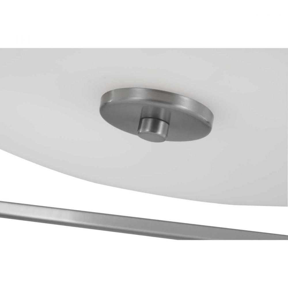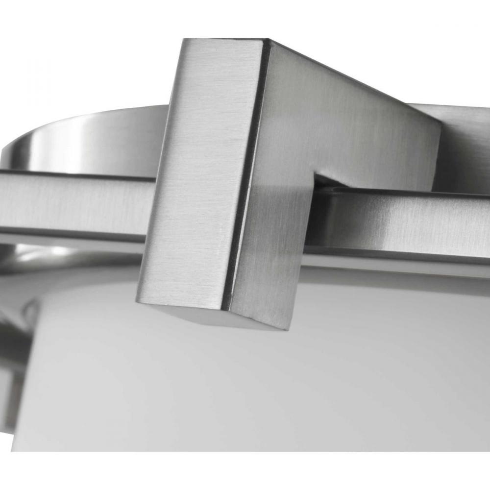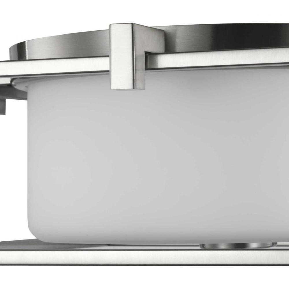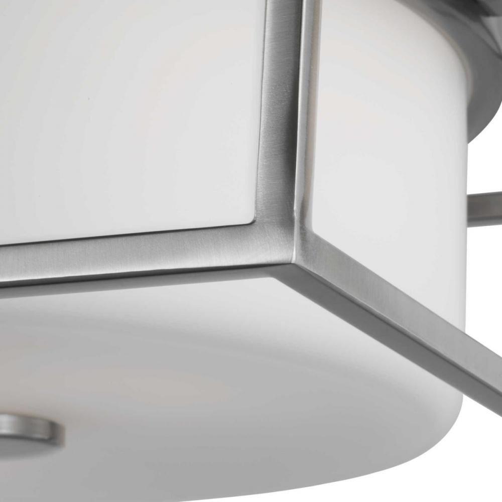 A beautiful opal glass shade visually calms the sharp edges of the boxy frame in a masterful stroke of design excellence.;The frame is coated in a classic brushed nickel finish that contrasts the light shade.;The light fixtures is just right for spaces in