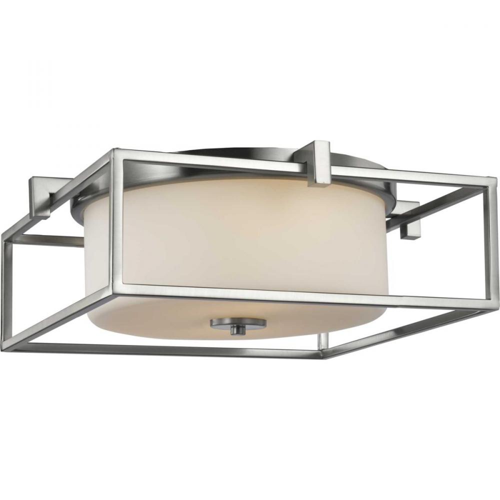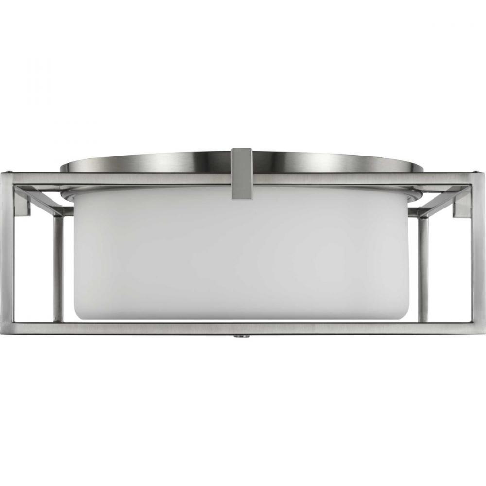 Stick With Simple Geometric Forms And Clean Crisp Lines With This Modern Flush Mount. A Beautiful Opal Glass Shade Visually Calms The Sharp Edges Of The Boxy Frame In A Masterful Stroke Of Design Excellence. The Frame Is Coated In A Classic Brushed Nickel Finish That Contrasts The Light Shade. The Light Fixture Is Just Right For Spaces In Need Of A Subtle, Feminine Touch.