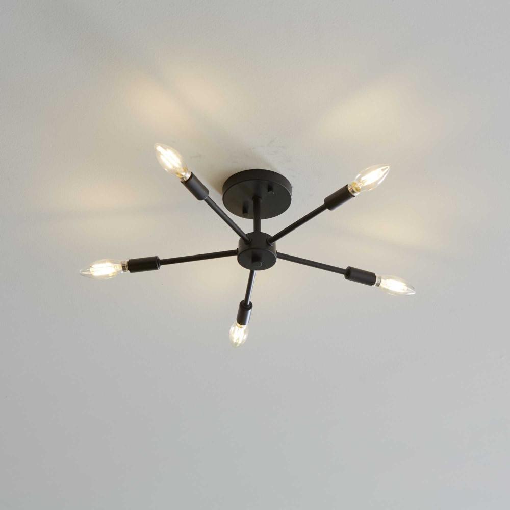 Delayne has a mid-century appeal defined by an array of arms that extend outward from a rounded, central support, making a statement on bathroom, bedroom and living room ceilings;An elegant matte black finish interacts with the light, creating a lighting