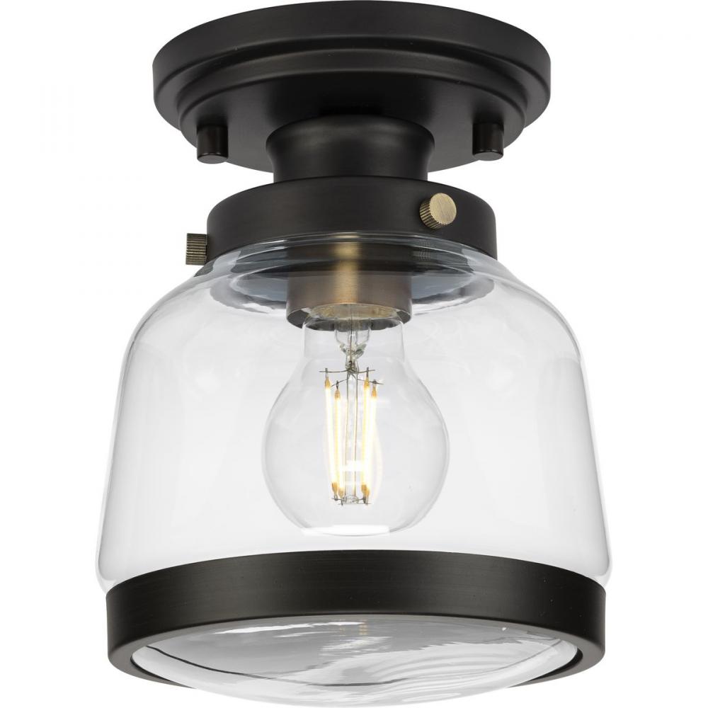 The Judson Collection features a timeless clear schoolhouse-style globe that is the ifeal complement for hallways, foyers, bathrooms and bedrooms;Distinctive metal fittings add character to farmhouse, transitional and coastal settings.;Coated in a mellow a