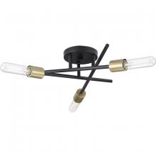 The Astra semi-flush mount light features a space-age-inspired design perfect for modern and mid-century décor. A trio of spoked arms radiate out from a cylindrical down rod suspended from a center round canopy, bringing a dynamic flair to the fixture's design. A brushed nickel finish adds a touch of glamour. Decorative bulbs (sold separately) adorn the ends of each perpendicular arm. The generous scale is ideal for bringing illumination to bedrooms, hallways and family rooms. This fixture is part of the Progress Lighting Design Series, a lighting collection offering fashionable styles and affordable luxury lighting for the home.