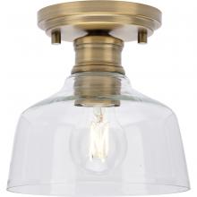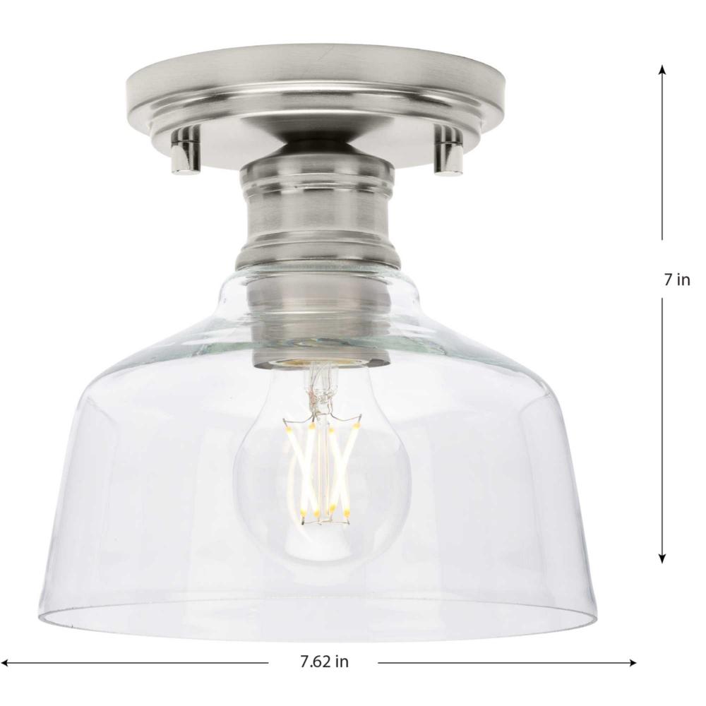 The Singleton Collection 1-light small semi-flush mount fixture pays homage to industrial styling with an oversized warehouse shade fabricated from clear glass. A round backplate and vintage-inspired metal fittings finished in subtle brushed nickel create a timeless design. The warehouse-style glass shade is the perfect showcase for clear decorative light bulbs (not included) to enhance the fixture's charming style. This beautiful ceiling light delivers optimal ambient lighting for bathrooms, bedrooms, hallways and foyers.