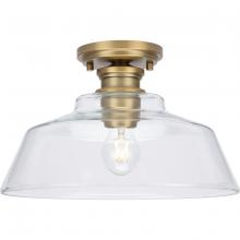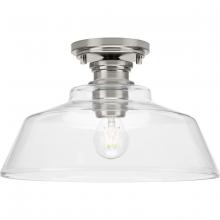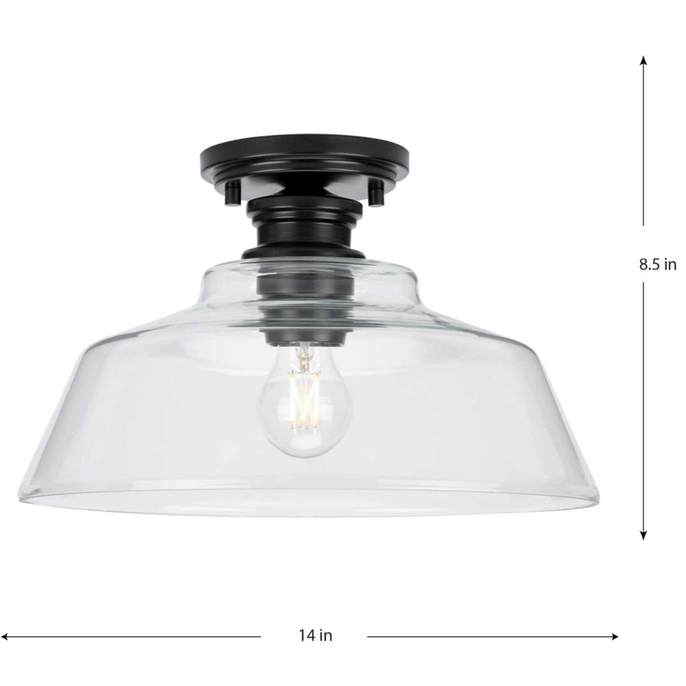 The Singleton Collection 1-light semi-flush mount fixture pays homage to industrial styling with an oversized warehouse shade fabricated from clear glass. A round backplate and vintage-inspired metal fittings finished in classic matte black create a timeless design. The warehouse-style glass shade is the perfect showcase for clear decorative light bulbs (not included) to enhance the fixture's charming style. This beautiful ceiling light delivers optimal ambient lighting for bathrooms, bedrooms, hallways and foyers.