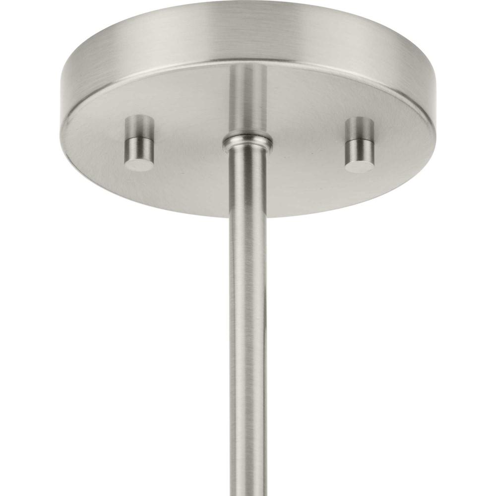 The fixture is coated with a subtle brushed nickel finish, enhancing its modern design