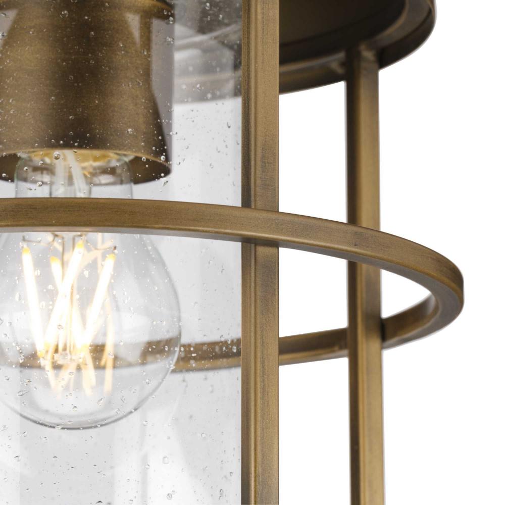 The fixture is coated with an lustrous aged bronze finish, enhancing its rustic design