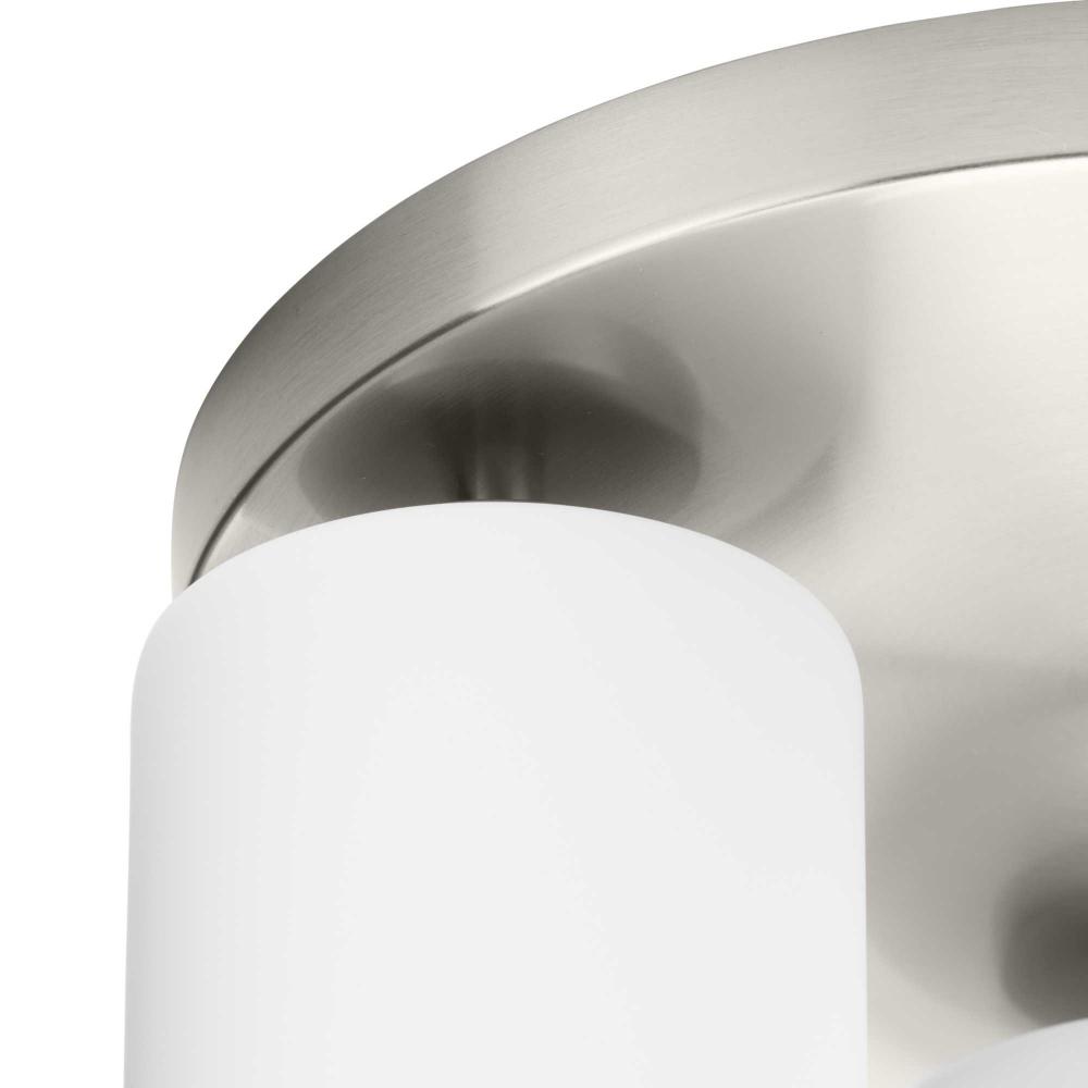 The fixture is coated with a subtle brushed nickel finish, offering an elegant contemporary design