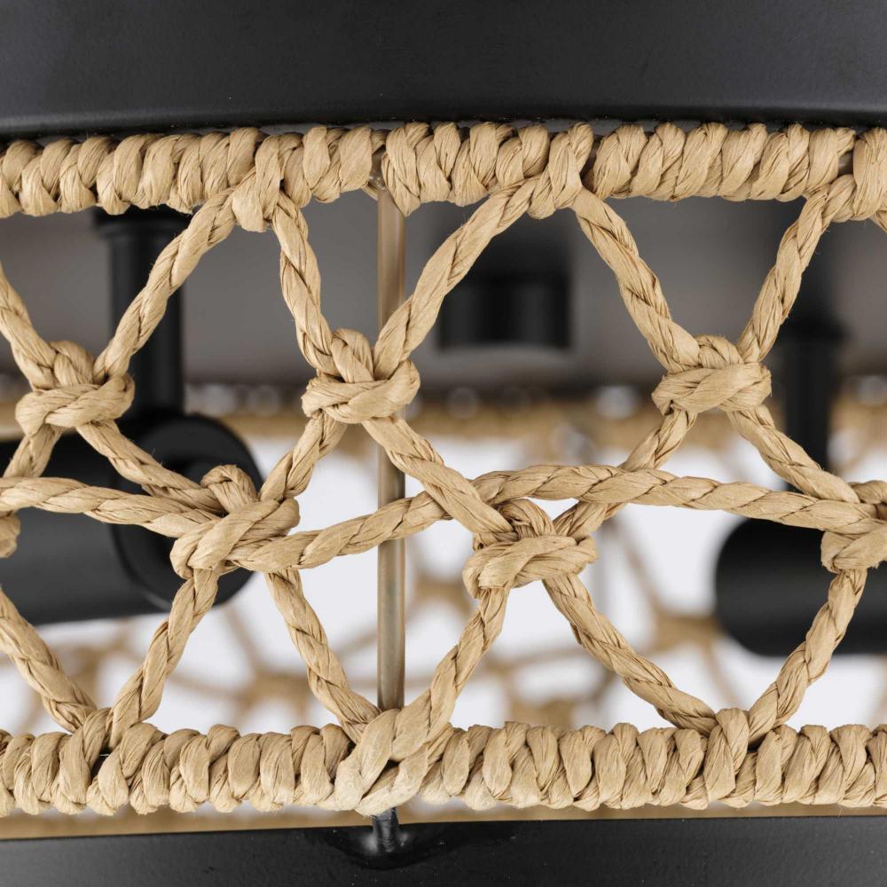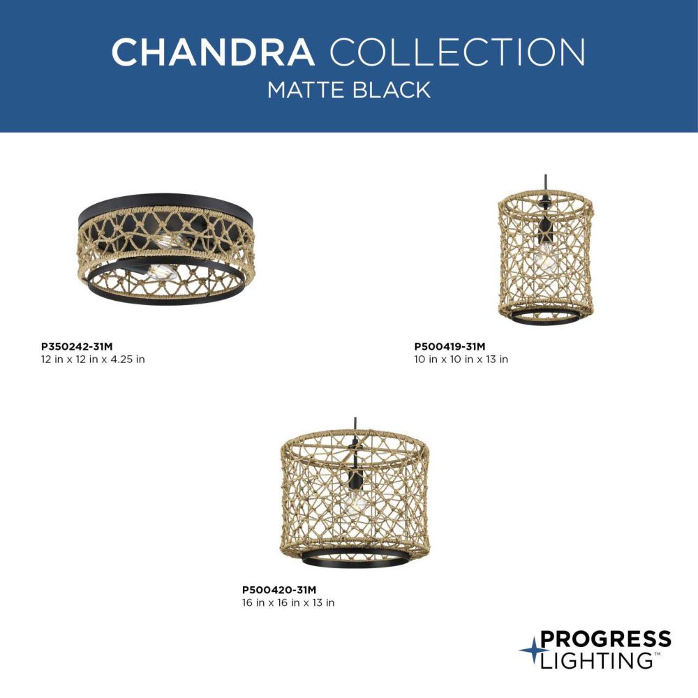 Chandra is handwoven by artisans into a casual, artful lantern form. This beautiful luminaire's organic style complements global, coastal and transitional settings. Knotted string in an open airy pattern filters light beautifully to provide relaxed warmth and texture to bedrooms, hallways and foyers. This fixture is part of the Progress Lighting Design Series, a lighting collection offering fashionable styles and affordable luxury lighting for the home.