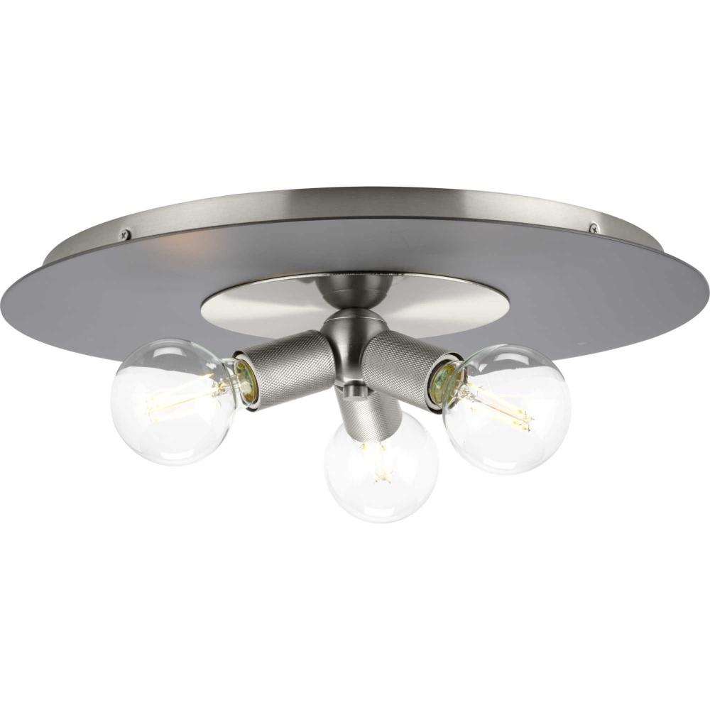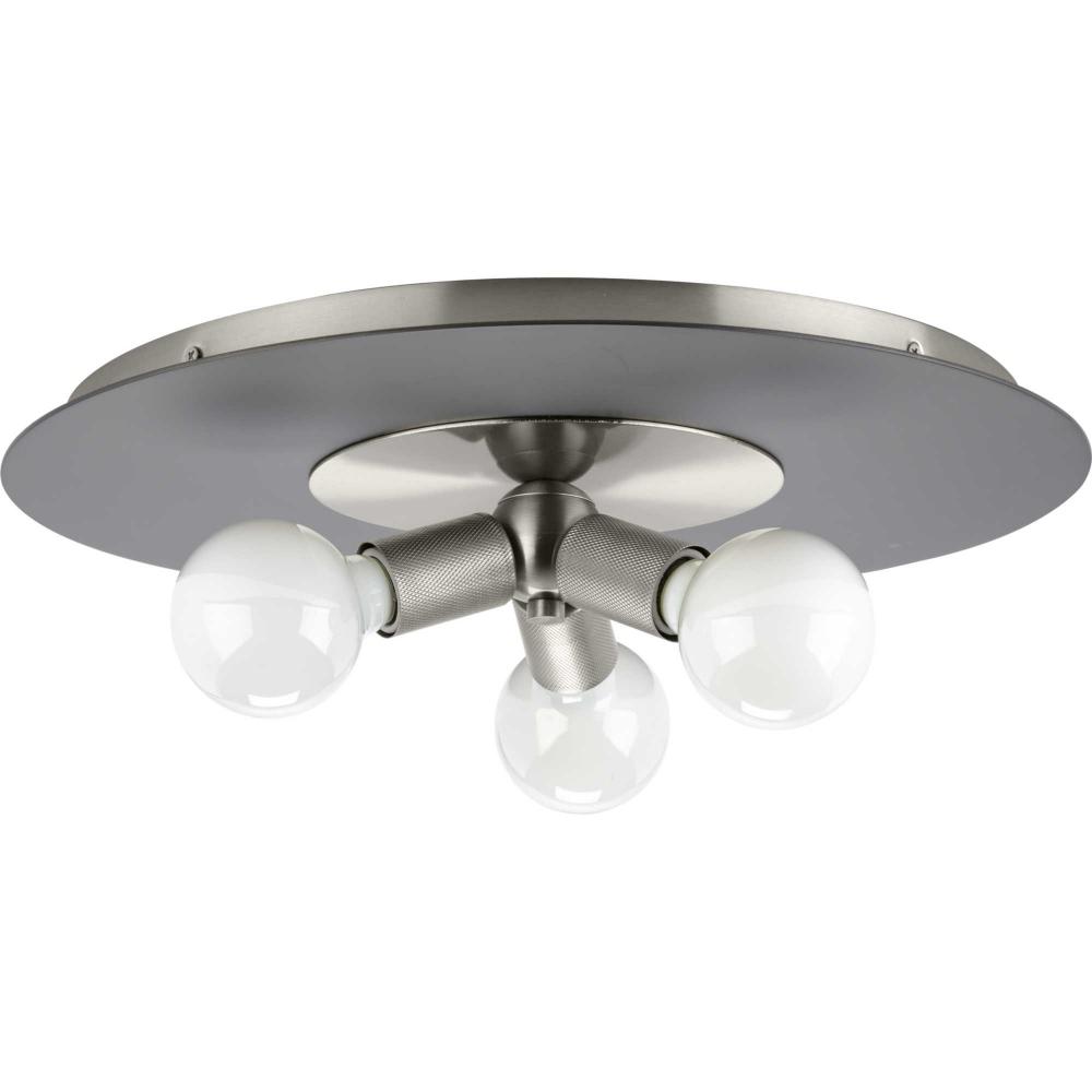 An intriguing flat disc shade forms the basis of the Trimble Collection, whose mid-century modern inspiration is perfect for open spaces in mid-century modern and luxe industrial settings. A two-toned finish on the shade features subtle brushed nickel and crisp graphite, plus a knurled metal lamp socket is coated in brushed nickel providing additional rich visual interest. Use vintage-style bulbs to add modern appeal and to cast crisp illumination to living rooms, bedrooms, hallways and foyers.