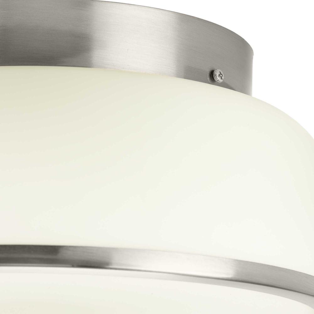 Graceful curves and bold angles combine to create a softly structured look in Parkhurst. An airy frame coated in soft brushed nickel defines the form and delivers unobstructed layers of light though etched glass shades. The visual appeal of the flush mount will offer a subtle and elegant silhouette over home theaters, bathrooms, or bedrooms in new traditional and contemporary interiors.