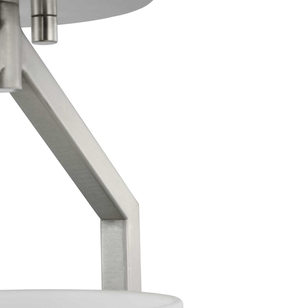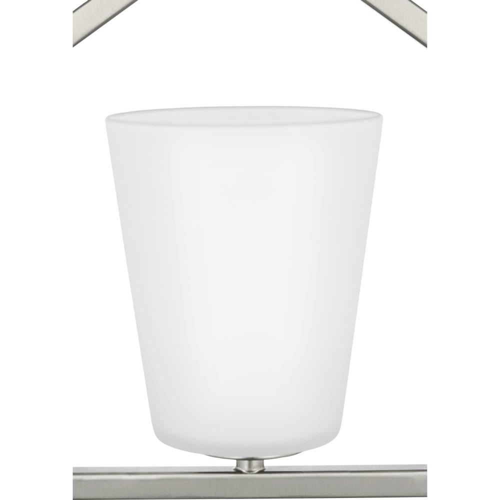 A lovely brushed nickel frame define the fixture's distinct, angular silhouette