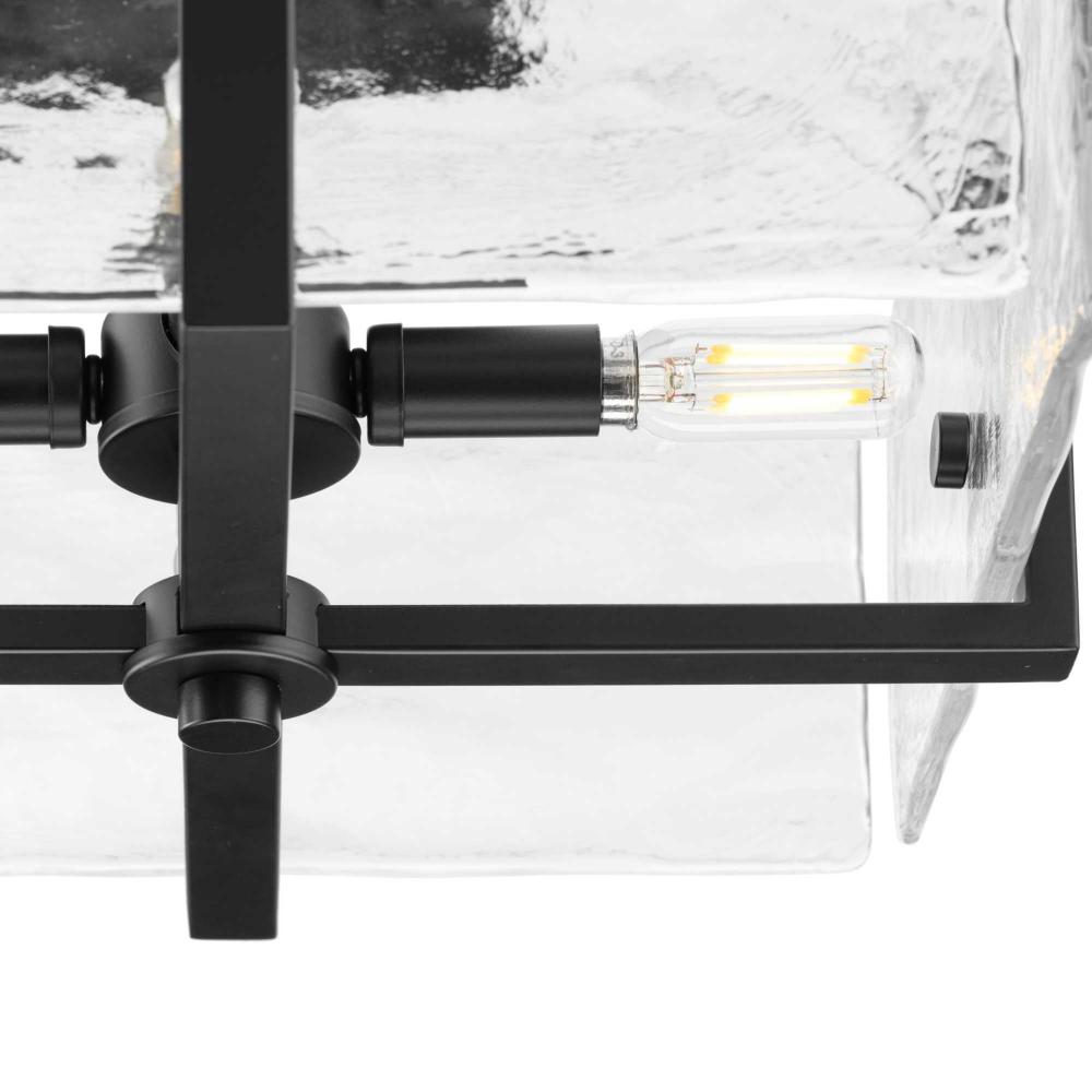 Indulge your artistic sensibility with luxurious lighting from the Rivera Collection. Softly filtered illumination through an icy display creates an otherworldly effect. Linear segments in rich, deep black tones frame billets of handcrafted, clear textured glass in a modern craftsman-inspired design.This fixture is part of the Progress Lighting Design Series, a lighting collection offering fashionable styles and affordable luxury lighting for the home.