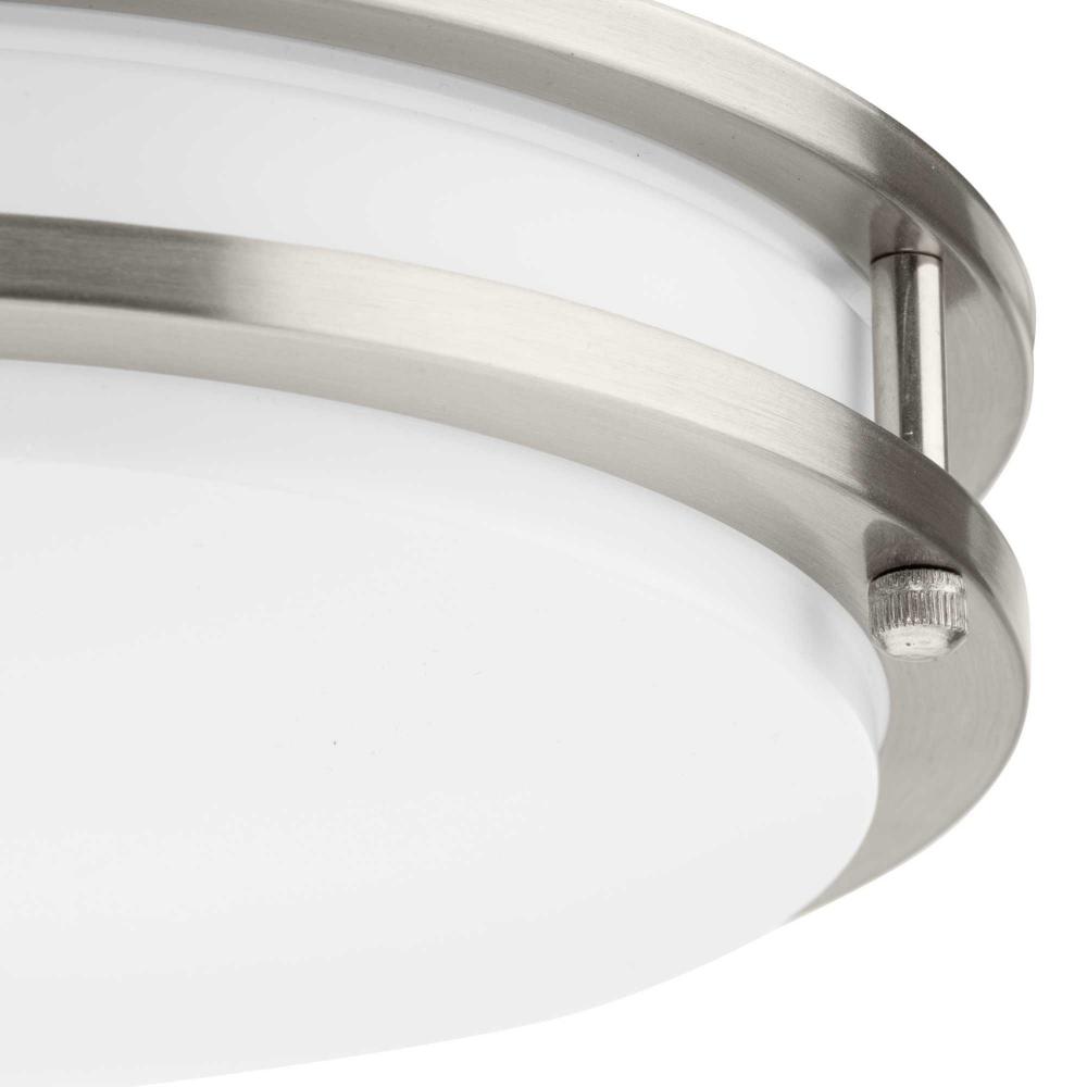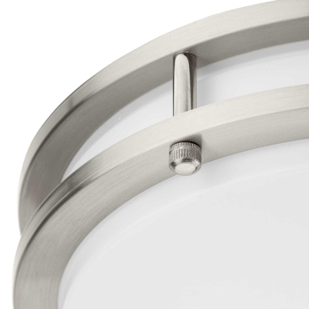 The Abide Integrated LED Small Round Flush Mount Light is precision crafted for contemporary settings. Sleek Brushed Nickel circular bands hold a white acrylic diffuser concealing its 5 CCT selectable (2700K, 3000K, 3500K, 4000K and 5000K) dimmable LED light source.