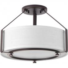 The three-light semi-flush offers a sleek metal frame that supports a low-slung shade to create Ratio’s casual modern style. The frame’s proportion to the white linen drum shade evokes a perfect ratio for lighting. Includes a polished glass exterior, etched glass interior diffuser that offers an elegant appeal and is easier to clean – offering both fashion and function. This fixture can be mounted as a semi-flush or used as a hanging pendant for a wide variety of applications. Brushed Nickel finish.
