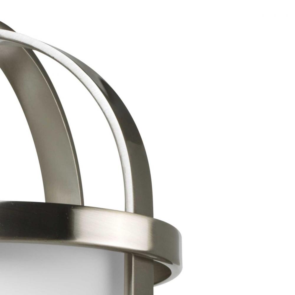 Discover the antique nautical charm of this Bay Court Collection One-Light Foyer Pendant. An etched glass diffuser is surrounded by a water glass gallery for a clean, beautiful design. This contemporary interpretation of a classic light fixture can is ideal for hanging over kitchen islands or in foyers. Great for kitchen islands, on each side of the bathroom mirror and many other areas of the home. One-light 11-3/4" foyer pendant-hanging lantern in a Brushed Nickel finish.