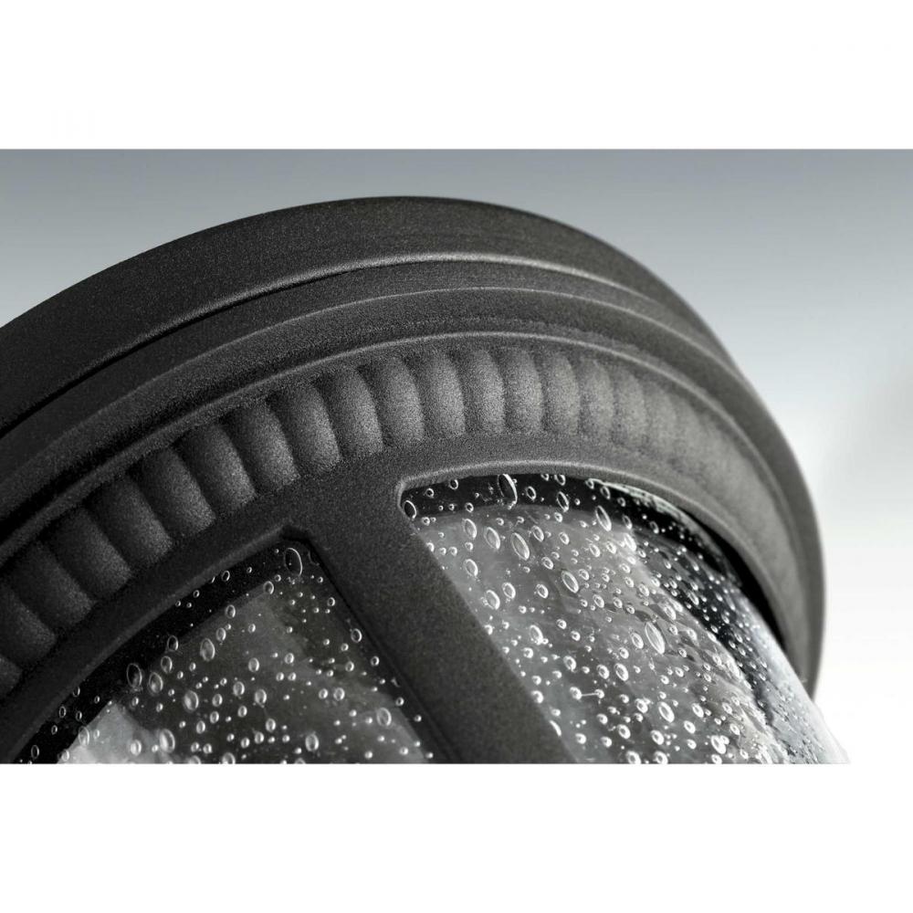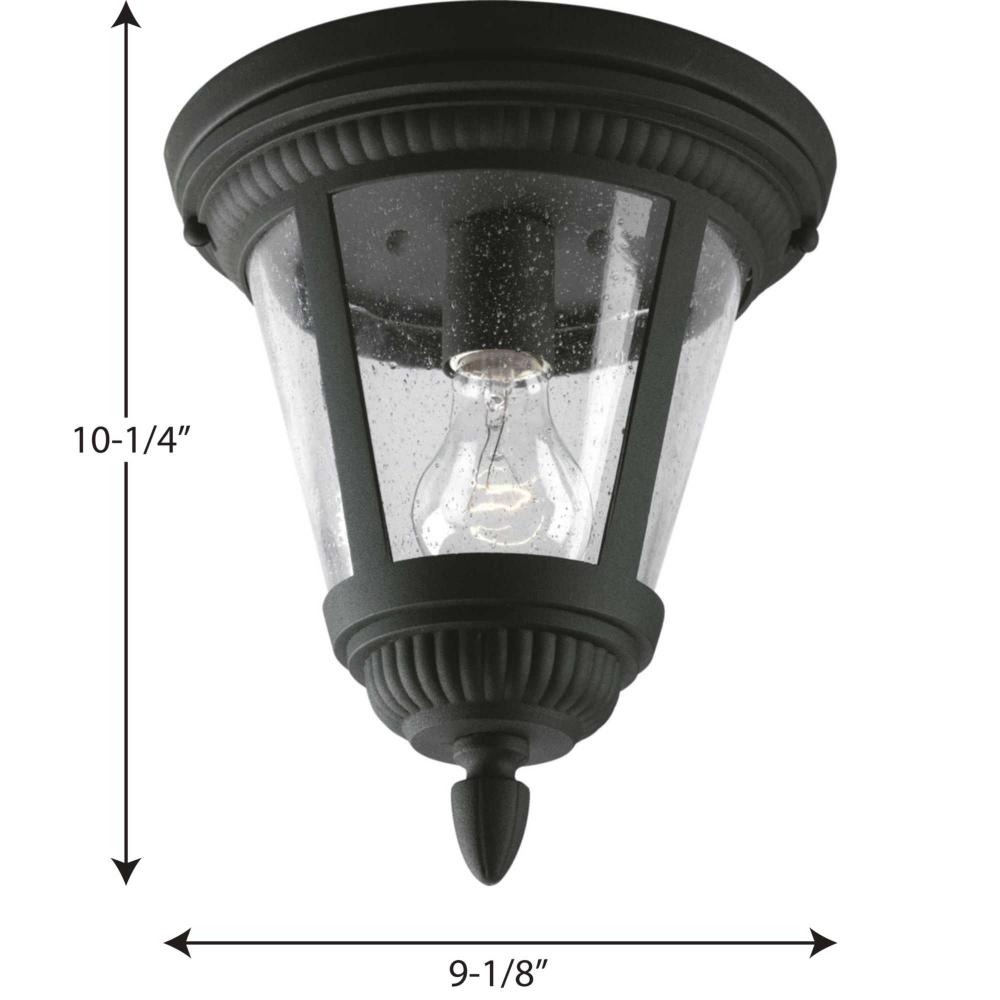 Add a touch of rustic appeal and classic styling with beaded detailing in the Westport collection. Clear seeded glass compliments the durable powder coat finish in die-cast aluminum frames. One-light close-to-ceiling. Black finish.