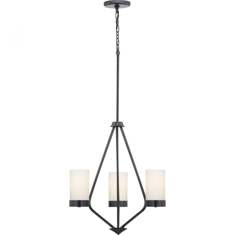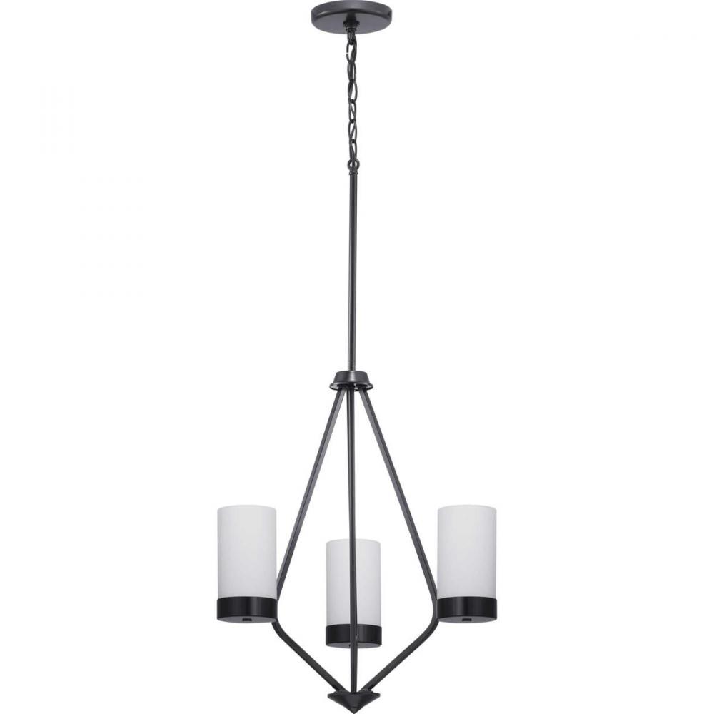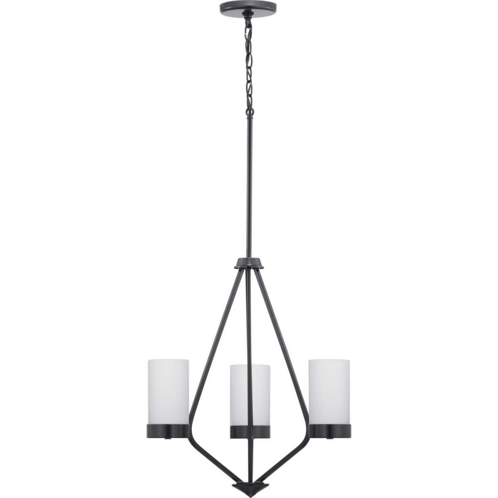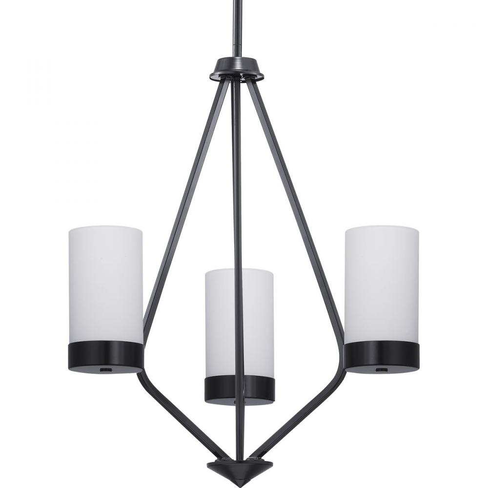 Achieve a sleek and modern look with the Elevate Collections three-light chandelier. Etched glass white shades paired with a Matte Black frame provide an elegant contrast for Modern interior design settings. This fixture is part of our Design Series collections.