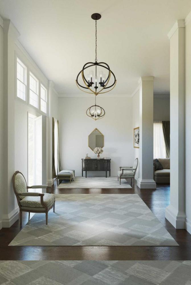 Mixed finishes, such as Antique Bronze with champagne accents are highlighted in new versions of the popular Evoke chandelier. This updated design features an oversized oval form with candelabra lights that complement a livable Luxe style, as well as Transitional and Mid-Century interiors.
