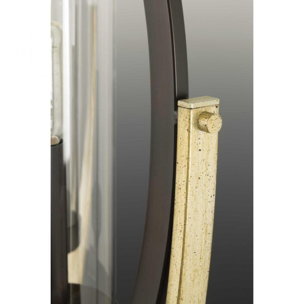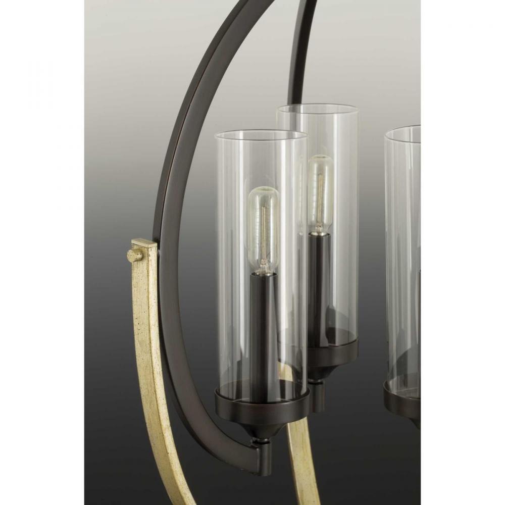 Mixed metal finishes highlight popular dual toned home decor accents.;Updated design features an oversized oval form with candelabra lights.;Antique Bronze with champagne accents.;Uses five 60-watt max. candelabra style bulbs including LED equivalent (sold
