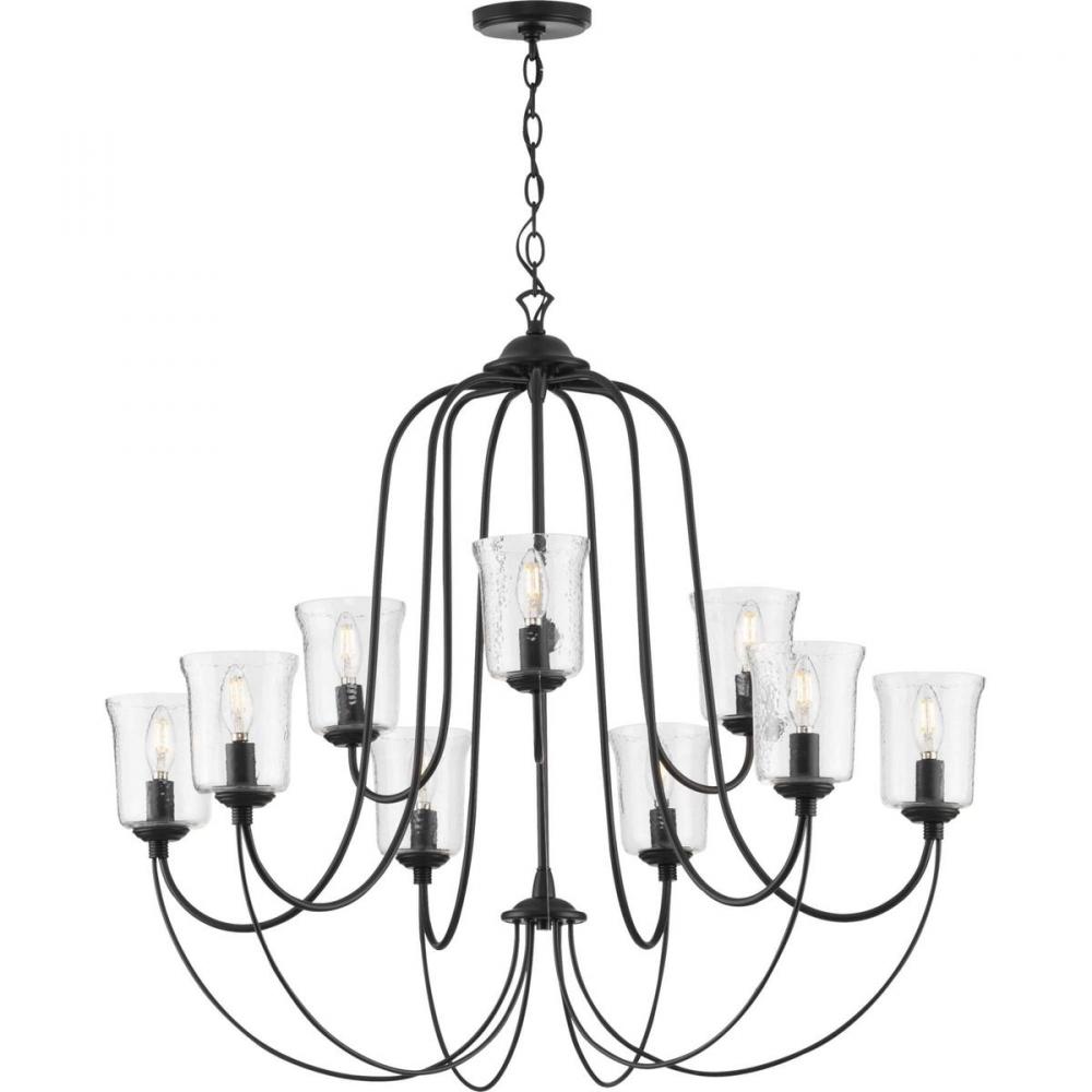 Progress P400195-031 - Bowman Collection Six-Light Matte Black Clear Chiseled Glass Coastal Chandelier Light