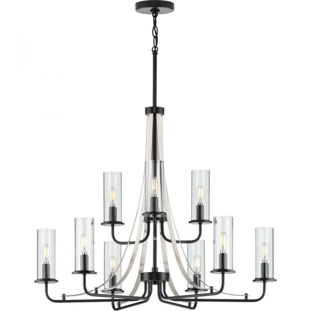 Incorporate a sleek simplicity and natural beauty with this chandelier. Clear glass shades are ready to offer stunning, rejuvenating illumination. The shades rest on a gorgeous dual-tone frame with a black finish accented by a brushed nickel trim that manifests feelings of tranquility and serenity.