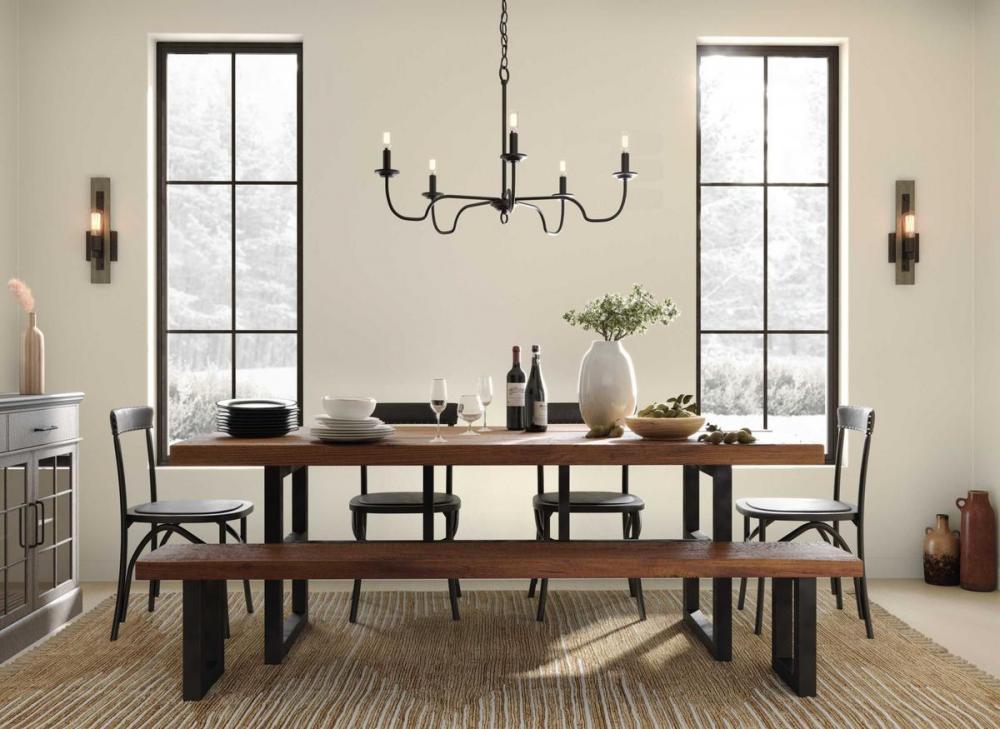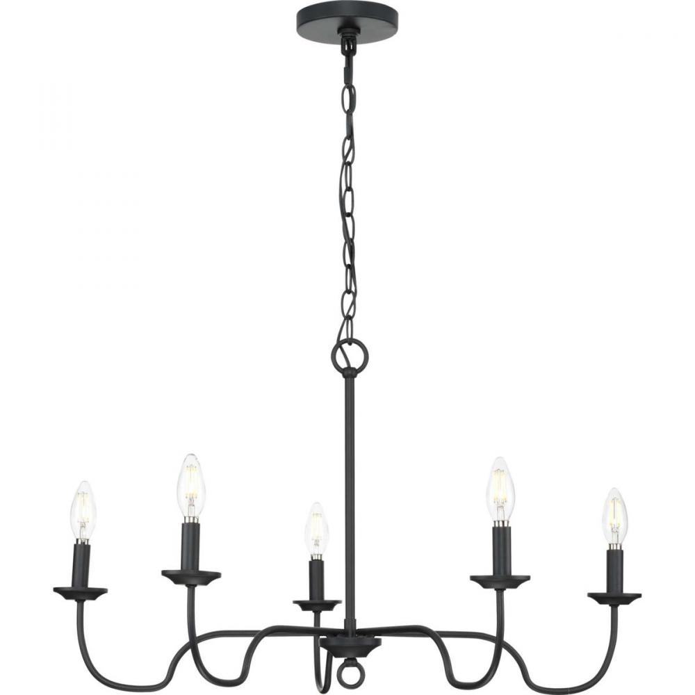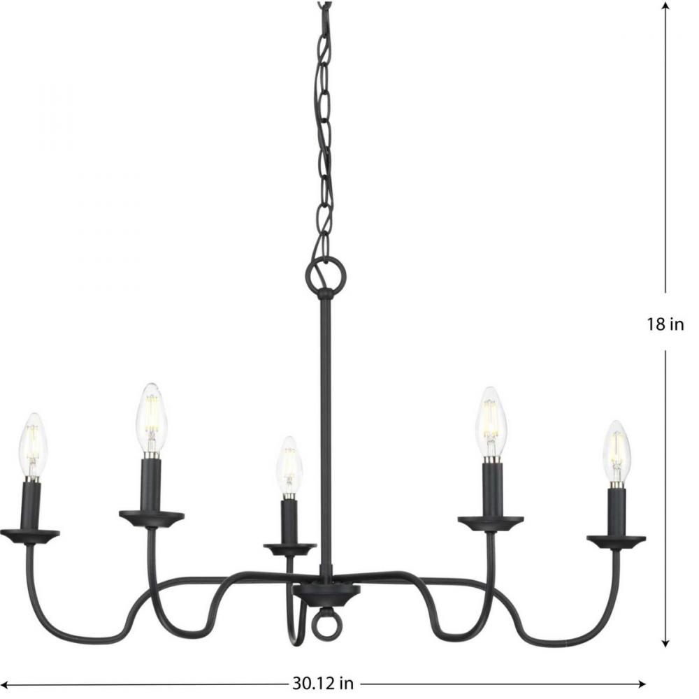 Ideal for a dining room, great room, or bedroom;Perfect for farmhouse style settings;Classic matte black finish;Incorporate vintage or contemporary bulbs;One 72-inch chain is included to customize for various ceiling heights;Use 5 candelabra base bulbs tha