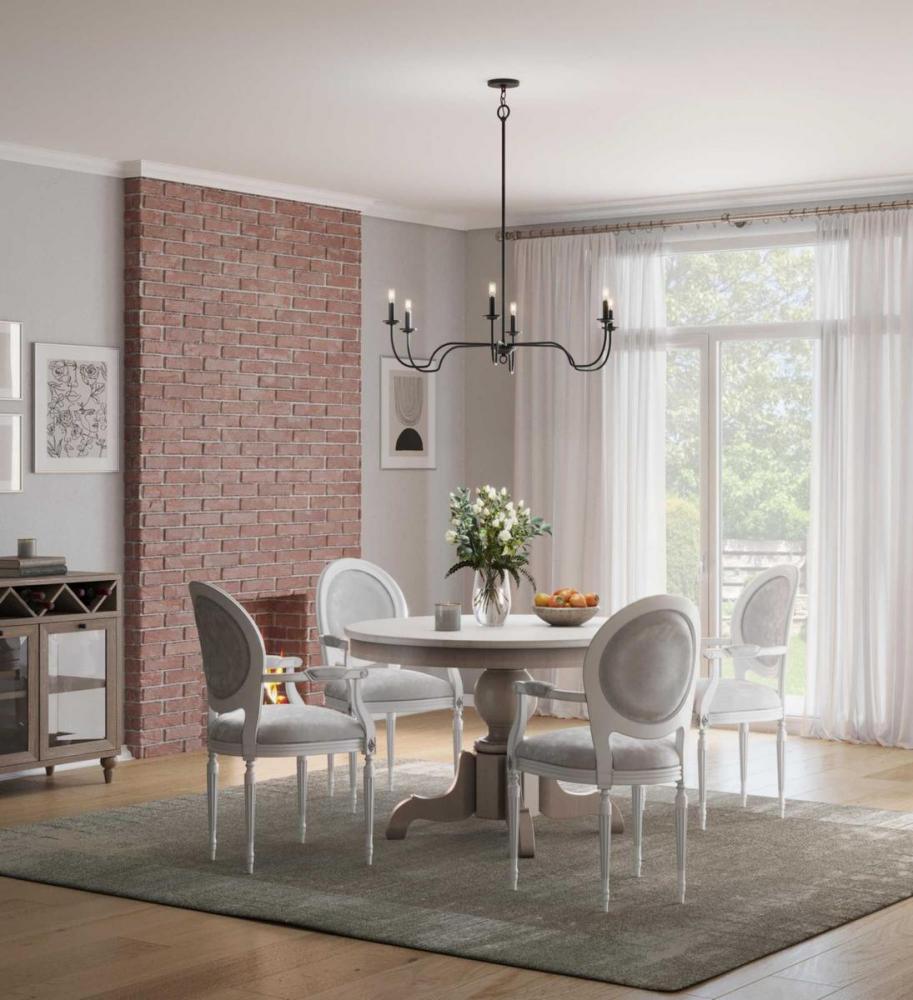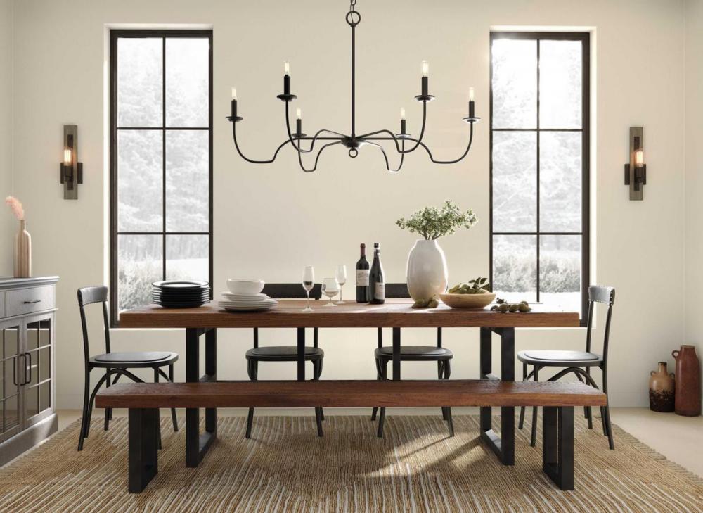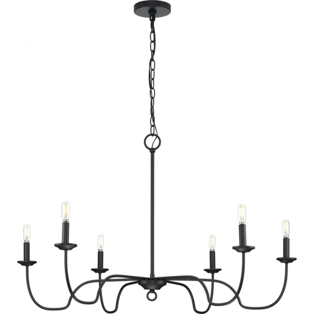 Ideal for a dining room, great room, or bedroom;Perfect for farmhouse style settings;Classic matte black finish;Incorporate vintage or contemporary bulbs;One 72-inch chain is included to customize for various ceiling heights;Use 6 candelabra base bulbs tha