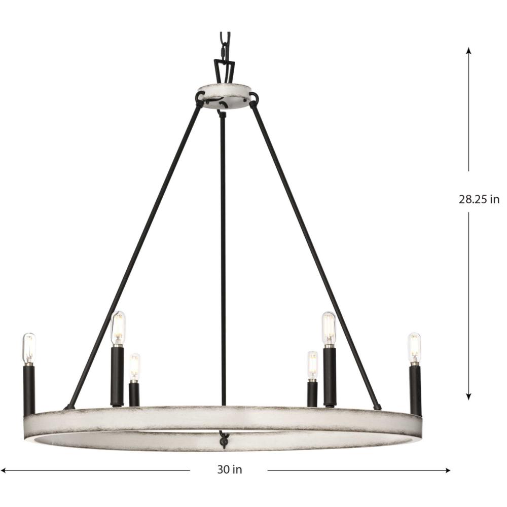 Progress P400301-31M - Galloway Collection Five-Light 19.25" Matte Black Modern Farmhouse Chandelier with Distressed Wh