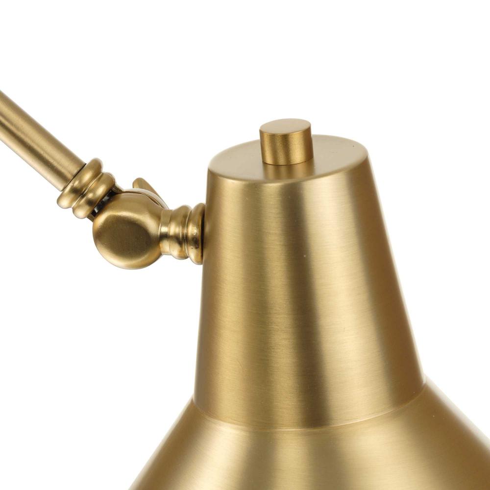 The fixture's strong lines is beautifully accented by a golden brushed bronze finish and a white inner shade