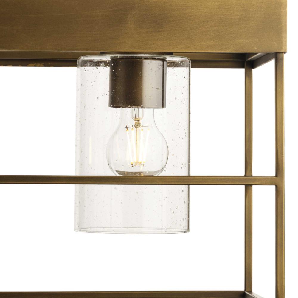 The fixture is coated with an lustrous aged bronze finish, enhancing its rustic design