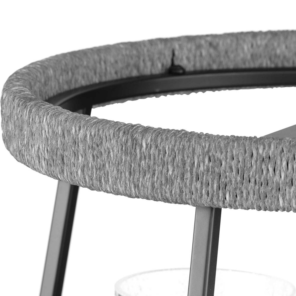 Its open cage design has a rope element wrapped around the frame, boldly defining its strong industrial-inspired form