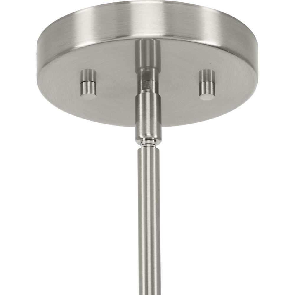 The fixture is coated with a brushed nickel finish, enhancing its modern design