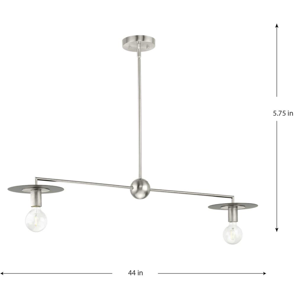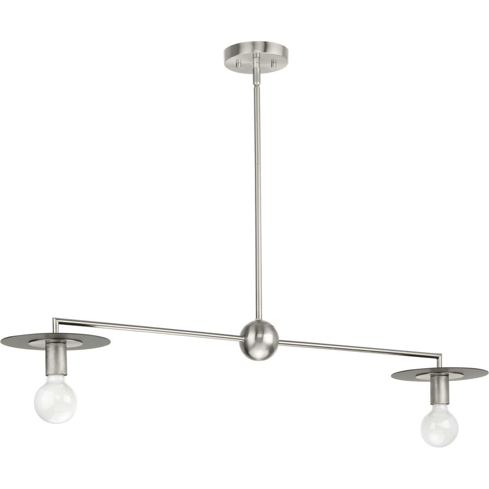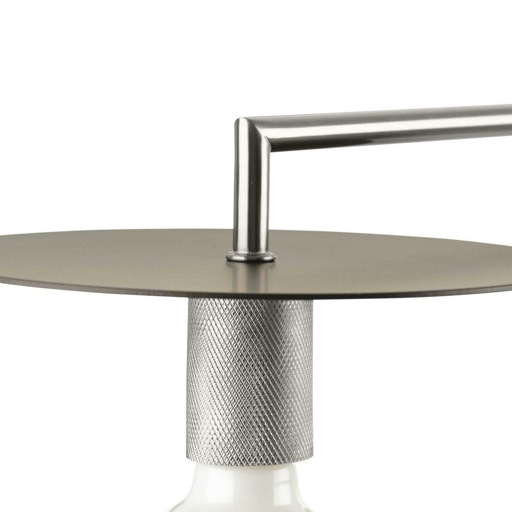 An intriguing flat disc shade forms the basis of the Trimble Collection, whose mid-century modern inspiration is perfect for open spaces in mid-century modern and luxe industrial settings. A two-toned finish on the shade features subtle brushed nickel and crisp graphite, plus a knurled metal lamp socket is coated in brushed nickel providing additional rich visual interest. Use vintage-style bulbs to add modern appeal and to cast crisp illumination to kitchens, bars and dining rooms.