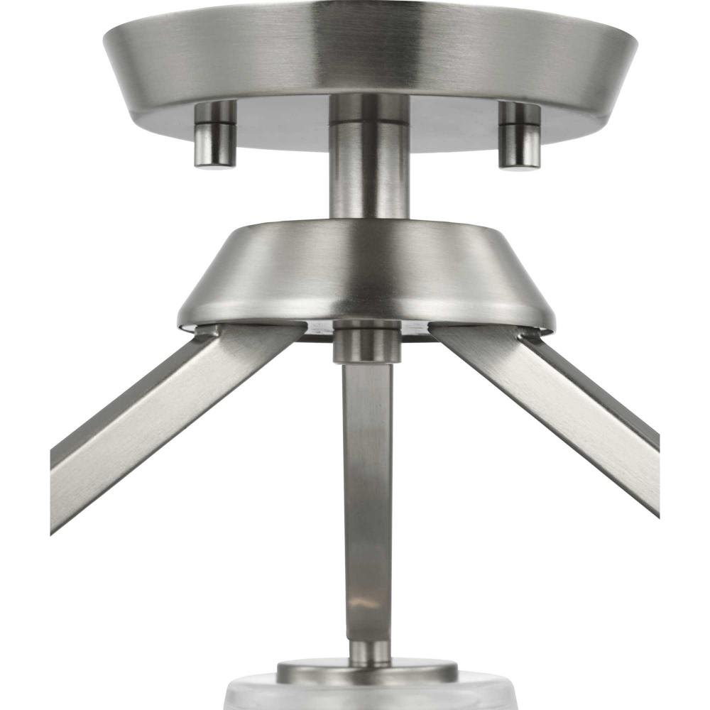 A lovely brushed nickel frame define the fixture's distinct, angular silhouette