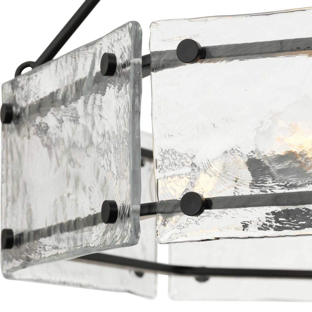 Indulge your artistic sensibility with luxurious lighting from the Rivera Collection. Softly filtered illumination through an icy display creates an otherworldly effect. Linear segments in rich, deep black tones frame billets of handcrafted, clear textured glass in a modern craftsman-inspired design.This fixture is part of the Progress Lighting Design Series, a lighting collection offering fashionable styles and affordable luxury lighting for the home.