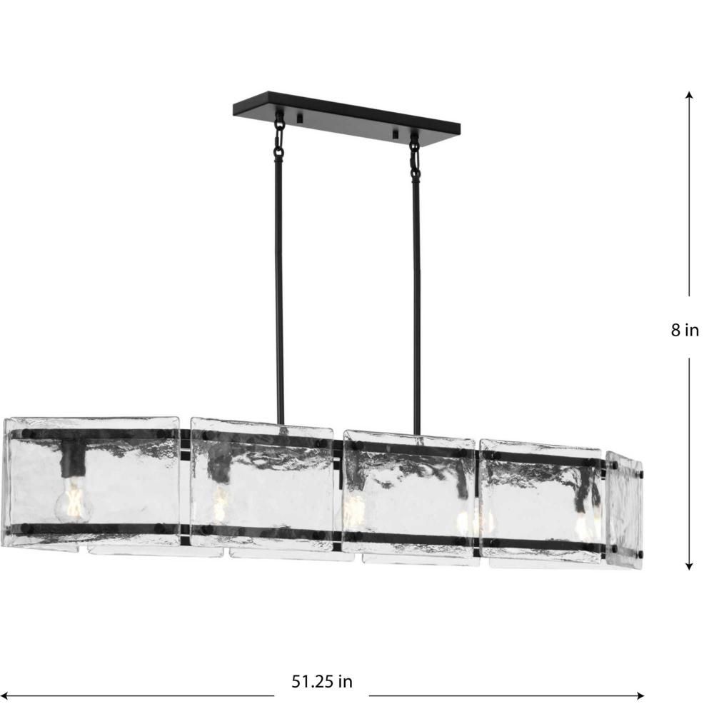 Indulge your artistic sensibility with luxurious lighting from the Rivera Collection. Softly filtered illumination through an icy display creates an otherworldly effect. Linear segments in rich, deep black tones frame billets of handcrafted, clear textured glass in a modern craftsman-inspired design.This fixture is part of the Progress Lighting Design Series, a lighting collection offering fashionable styles and affordable luxury lighting for the home.
